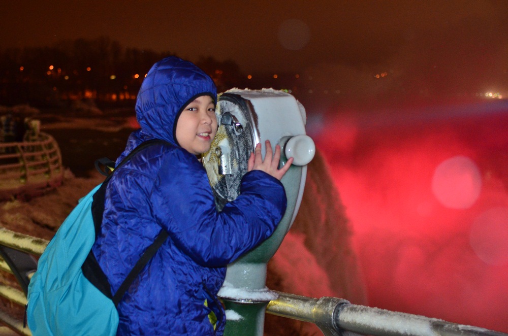 Jam 4 sore kami melanjutkan perjalanan menuju Niagara Falls. Perjalanan selama 2,5 jam tak terasa, karena saya tidur nyenyak di jalan.. 😀 Di Niagara, kami menginap di hotel Marriott Niagara. Malam ini kami makan malam di Chinese restaurant tak jauh dari hotel. Setelah makan malam, kami diajak jalan kaki ke air terjun Niagara, bagian American Falls. Malam hari pemandangan air terjun American Falls sangat cantik dengan lampu sorot berwarna warni. Konon, pemandangan air terjun Niagara ini akan lebih indah jika dilihat dari sisi Kanada, dari seberang sungai sana. Sayang kami tak punya visa Kanada, harus puas melihat air terjun dari sisi Amerika saja.