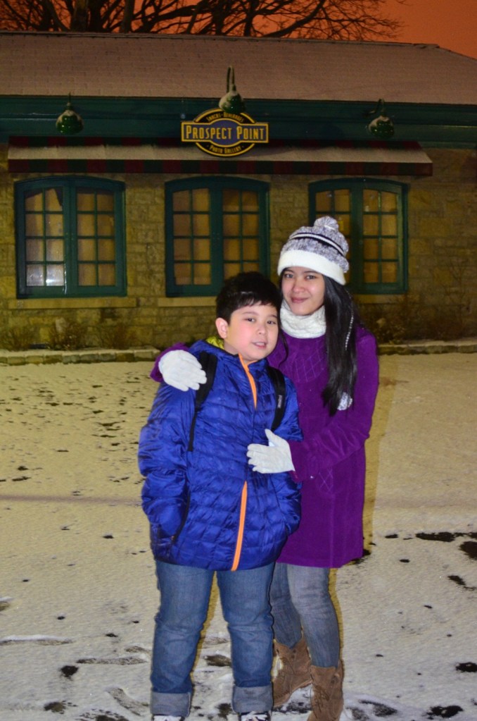 Saat kembali dari air terjun menuju hotel, turun hujan salju. Menurut tourguide, salju malam itu adalah salju pertama di musim dingin ini, dalam waktu beberapa menit saja, pohon-pohon di sekitar air terjun mulai memutih tertutup salju tipis. Vira dan Rizki begitu gembira melihat hujan salju ini. Bagi Rizki, ini adalah pengalaman hujan salju pertamanya. 😀 Sekitar jam 10 malam kami kembali ke hotel untuk istirahat.