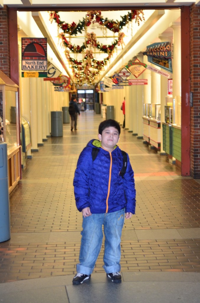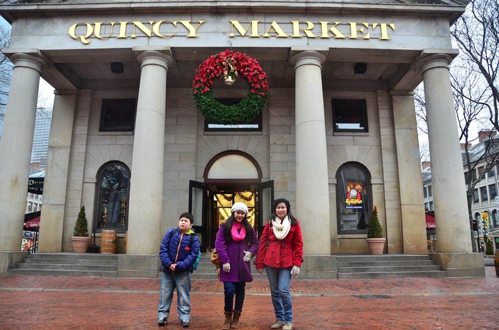 Bus wisata menurunkan kami di Massachusets State House, monumen Black Heritage Trail dan dilanjutkan ke Quincy Market, dimana peserta tour diberikan waktu bebas selama 2 jam untuk makan siang dan belanja. Quincy Market ini adalah pasar tradisional dengan sentuhan modern. Banyak los-los penjual sayur, buah dan daging yang tertata rapi. Di tengah pasar ada bangunan yang dijadikan mall kecil, terdapat toko-toko fashion, restoran dan cafe di gedung 2 lantai ini. Kami makan siang di restoran lokal di lantai 2. Sekitar jam 1 siang, kami meninggalkan Boston menuju New York City, acara selanjutnya adalah merayakan tahun baru di Times Square New York.