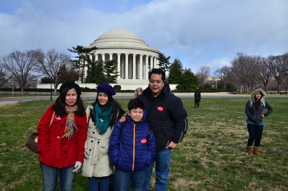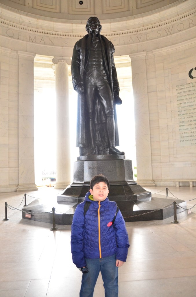 Selesai sarapan, kami melanjutkan perjalanan ke ibukota Amerika Serikat, Washington DC. Perjalanan dari Philadelphia ke DC ditempuh dalam waktu sekitar 2 jam. Sekitar jam 11 pagi kami memasuki Washington DC. Perhentian pertama adalah Jefferson Memorial. Bangunan yang dibuat untuk mengenang Presiden Thomas Jefferson ini terletak di tepi Potomac Tidal Basin. Jika dilihat di peta Wahington DC, lokasi memorial ini satu garis lurus dengan Washington Monument dan The White House. Di dalam memorial ini terdapat patung Thomas Jefferson dengan pose berdiri .