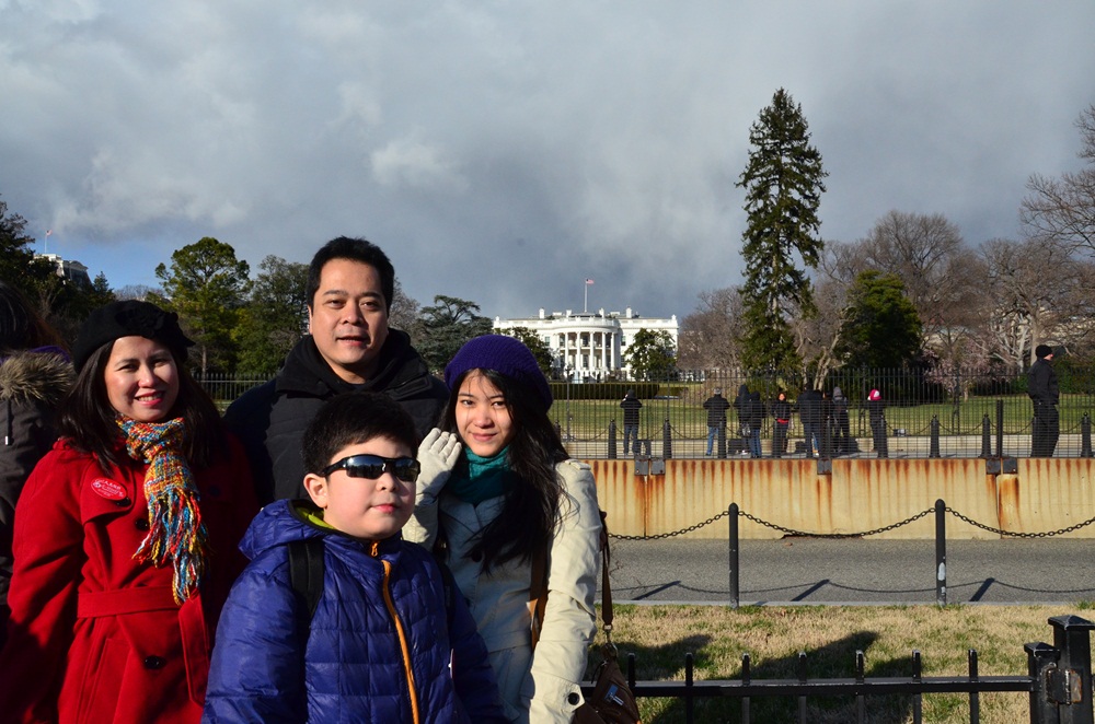 Dari Lincoln Memorial kami diajak ke Gedung Putih, The White House, yang merupakan kediaman resmi Presiden Amerika. Namun kami hanya bisa berfoto dari jauh saja, tidak bisa sampai ke pagar White House. Entah ada acara apa, halaman depan White House dipasang barikade beton beberapa puluh meter dari pagar White House. Saat saya ke Washington DC tahun 1991 dulu, kita bisa foto persis di depan pagar White House.