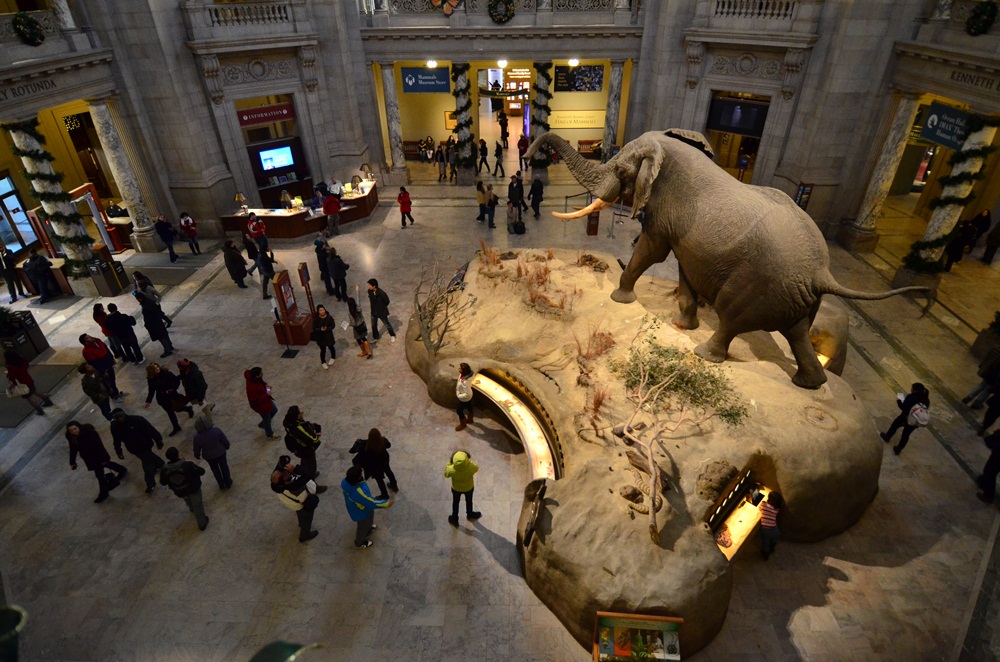 Perhentian terakhir sore ini di Washington DC, kami diajak ke Smithsonian National Museum of National History dan National Museum of Man. Museum ini cukup besar dan untuk masuk museum tidak dipungut biaya masuk, namun tetap harus mengambil tiket, untuk mendata jumlah pengunjung. Di aula utama museum ini terdapat patung Mammoth besar. Rizki yang sangat menggemari buku dan film tentang dinosaurus, sangat bersemangat melihat-lihat display dan fossil dinosaurus di museum ini.