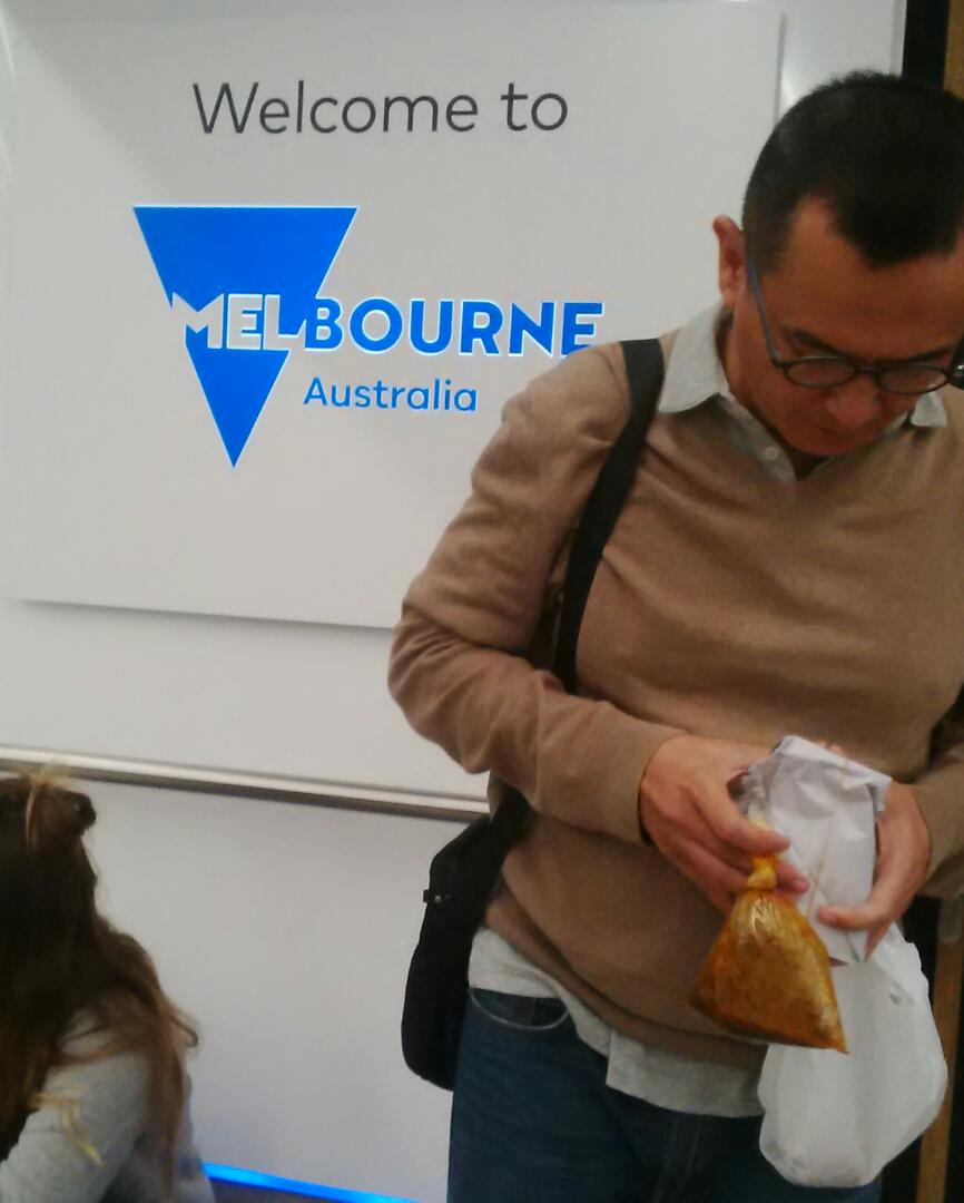 Agustus 2016 ada lagi duit lebih, kita berdua kepikir mau jalan jalan ke masjid di negeri barat. Karna duitnya nggak banyak, yang kepikir adalah Ostrali, proses visa ke agen travel dan dapat tiga tahun, kalo gini hasilnya, musti cari lebihan lagi buat pake visa. Kali ini modenya backpacker, walaupun sebenarnya pake koper. Sampai di Melbourne naik Garuda direct flight, pas di bandara makanan istimewa sudah siap dimakan, kita makan rendang. Rendang emang kita beli sebelum terbang, katanya harga makanan di Aussy mahal dan makanan gak boleh keluar bandara, jadi itu nasi dan rendang dua bungkus kita habisin setelah bermalam di pesawat selama 8 jam terbang dengan selingan makan di udara.