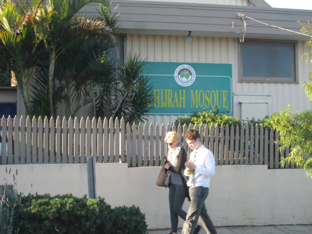 Karena saat itu hari Jumat dan udah liat2 sebelumnya masjid apa yang mau kita kunjungi, yang jadi tujuan kali ini adalah masjidnya orang2 Indonesia. Naik kereta ke Westall, turun dan jalan keluar kanan, koq sepi banget, nggak ada keliatan apa-apa dan perut sangat lapar. Sebelum turun di Westall kita lihat ada restoran halal di stasiun sebelumnya, okelah kita balik aja makan dulu karna waktu masih jam 10 lewat. Naik lagi kereta dam ketemu orang berjilbab warga keturunan TimTeng, kita tanya tentang masjid dan dia nggak tau. Turun di stasiun sebelumnya bernama Clayton ada beberapa resto halal, di stasiun ketemu muslim Indonesia berhijab, ya katanya masjid Westall turun kanan jalan dikit sampai, setelah makan kita ikuti saran tsb, turun kanan, sampai saya tanya balik … kanan embak atau kanan saya ?… hahahaha