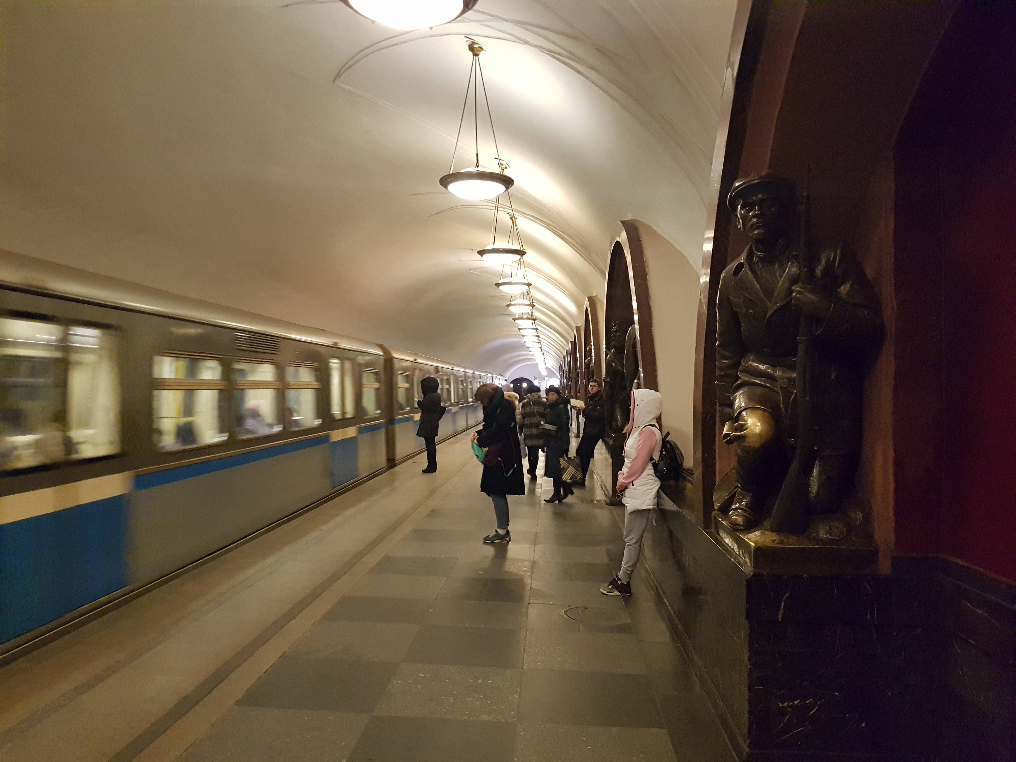 Setelah menyimpan koper dikamar dan rehat sejenak, kami berjalan keluar untuk menuju pusat kota. Izmailovo Beta hotel ini terletak persis di depan stasiun metro dan stasiun bus. Dari stasiun metro Partizanskaya, kami naik metro sejauh 5 stasiun dengan tarif one way 55 rubel. Cukup menantang juga mencoba membaca nama-nama stasiun metro dalam aksara cyrilic ini.
