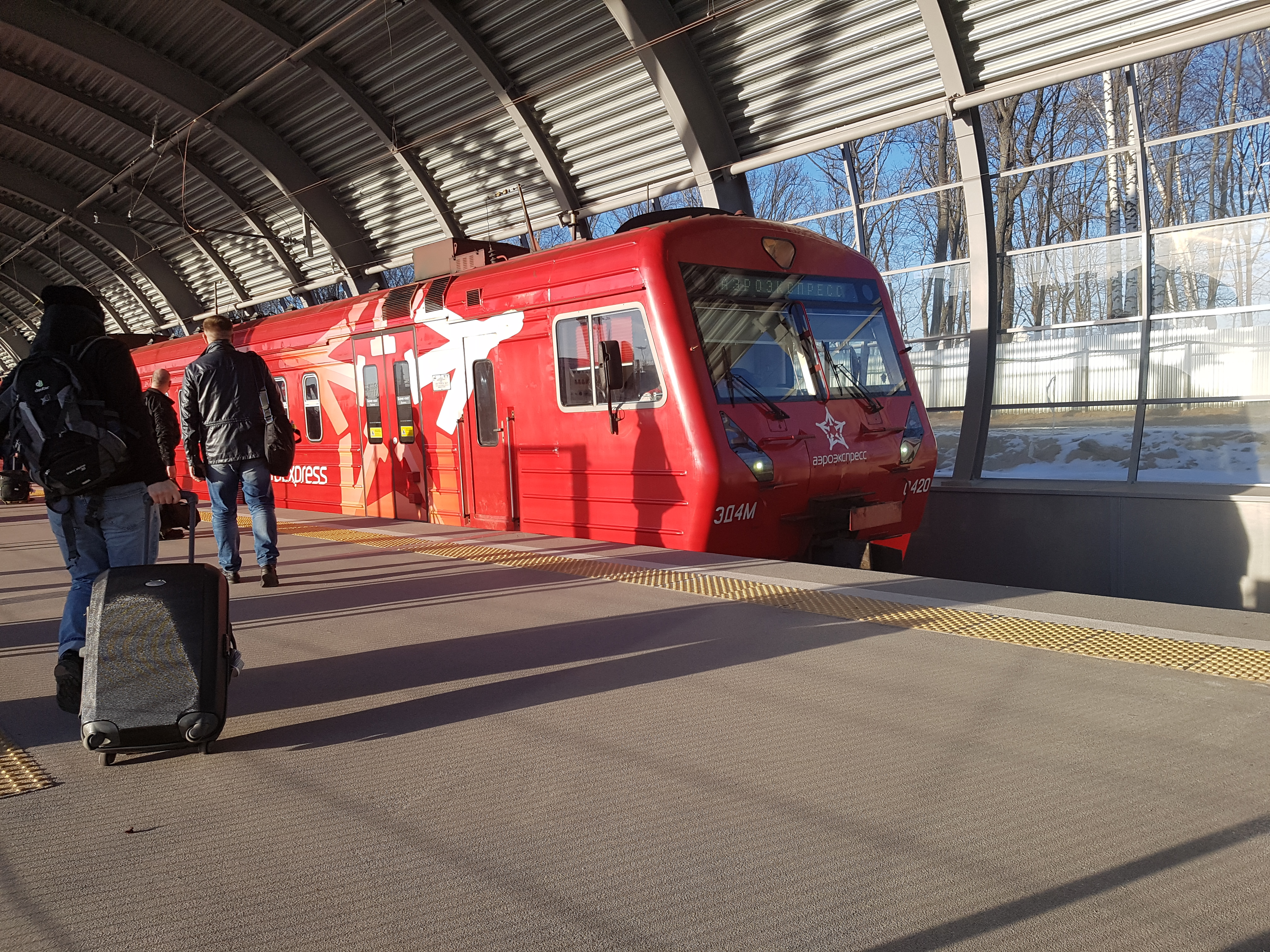 Kami kemudian menuju stasiun Aeroexpress train, beli tiket di mesin tiket dengan menggunakan kartu kredit. Harga tiketnya 500 rubel per orang, sekitar Rp. 120.000. Perjalanan kereta di tempuh selama 40 menit. Terlihat pemandangan sekitar rel yang masih banyak di selimuti salju tipis. Sampai di stasiun Paveletsky, kami di hampiri beberapa pengemudi taksi gelap, yang menawarkan transport ke hotel. Setelah tawar menawar, di sepakati tarif 700 rubel menuju Izamilovo Beta Hotel, tempat kami menginap selama 2 hari kedepan. Cuaca Moscow cukup dingin, sekitar 2 derajat celcius. Bahkan paginya ternyata masih turun salju.