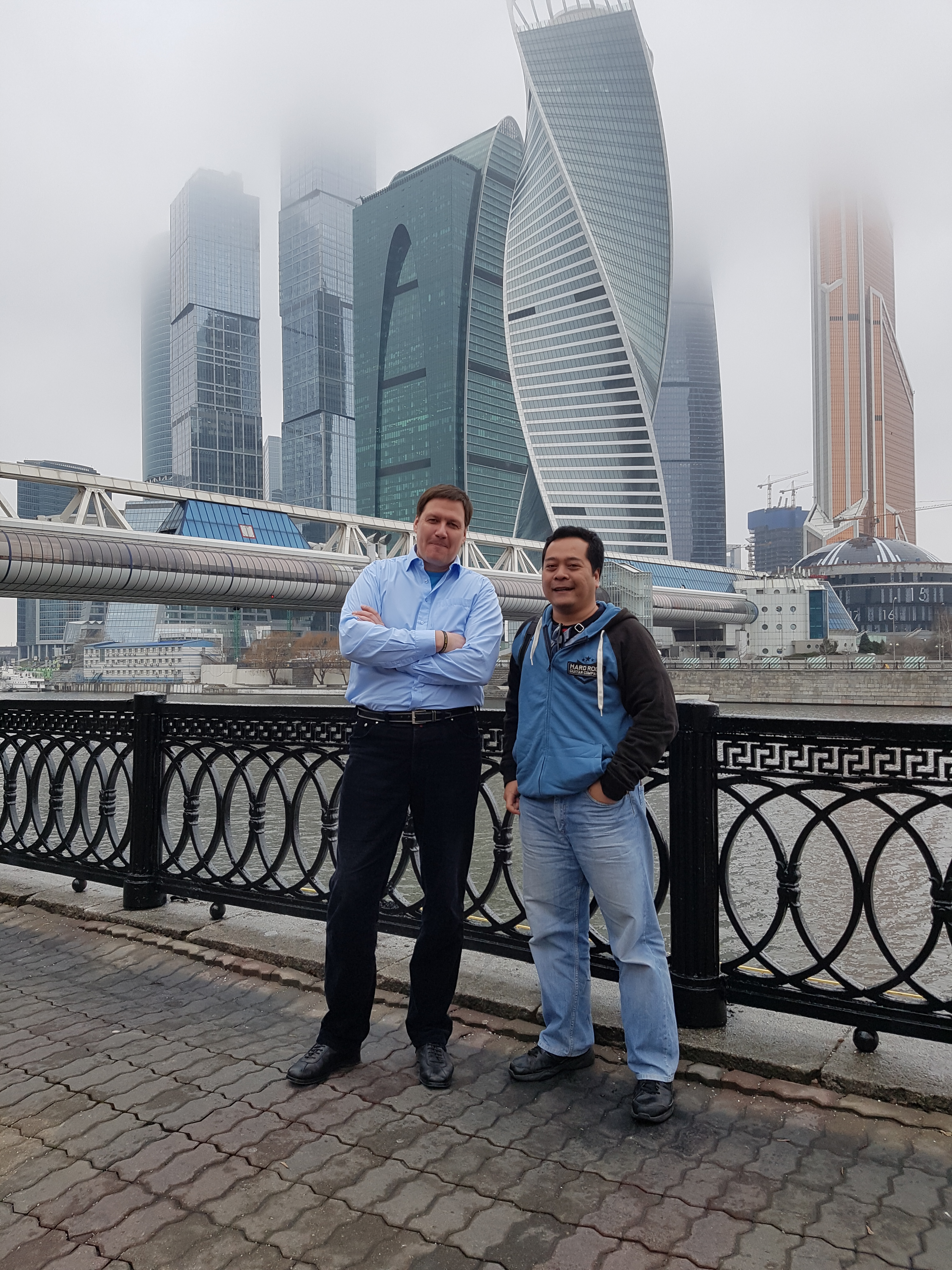 Sekitar jam 11.30 siang, saya di kontak teman kuliah saya yang warga Moscow, dia mengajak saya berkeliling Moscow dengan mobilnya. Saya sudah 20 tahun tidak bertemu Sergey, teman kuliah S2 tahun 1996-1997 dulu. Rentang waktu 20 tahun tak banyak mengubah penampilannya.. dari jauh saya langsung mengenali sosok tinggi besarnya. Setelah ngobrol sejenak, kami masuk ke mobilnya, karena di lapangan merah ini nggak boleh berhenti lama-lama.