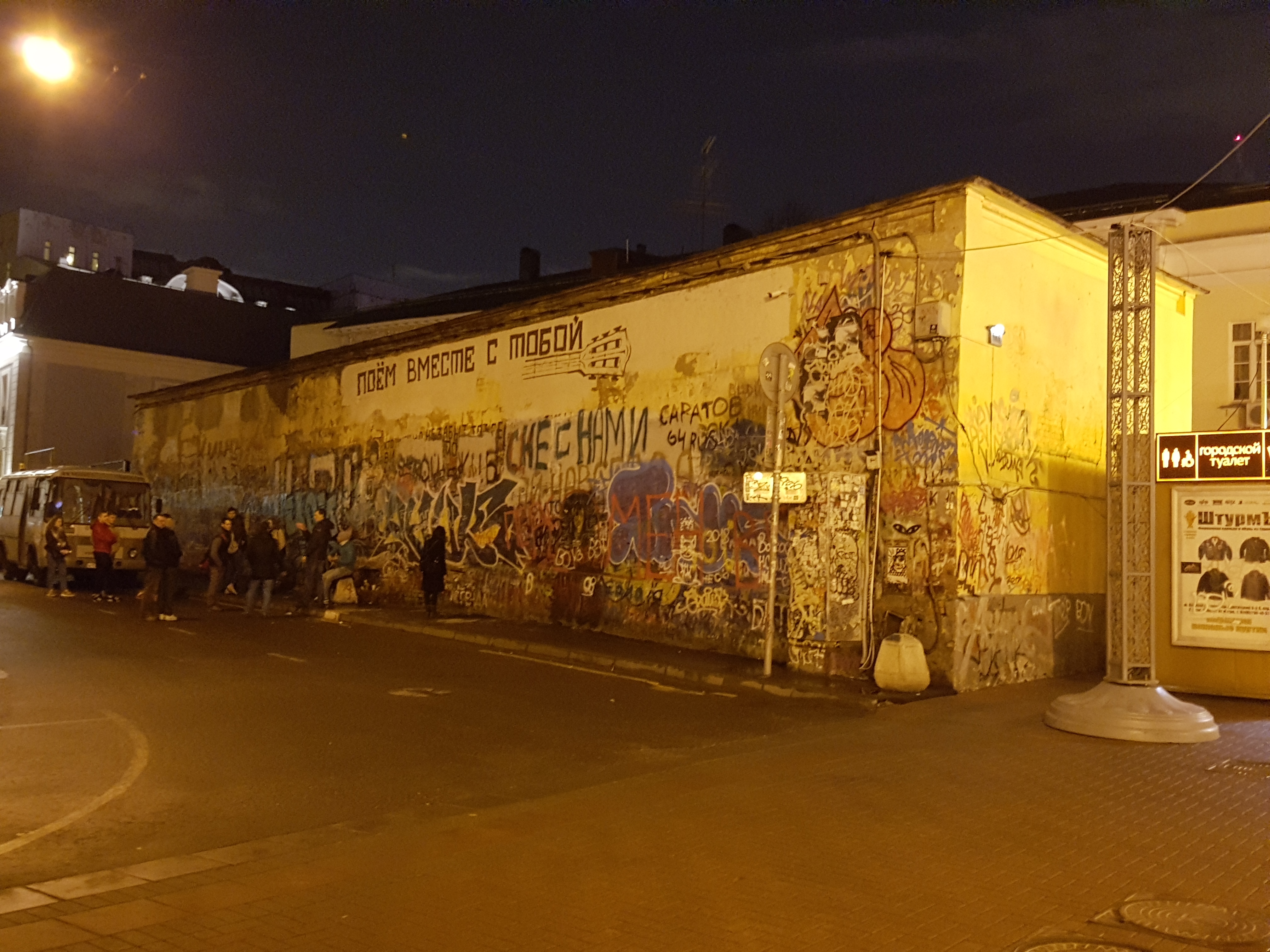 Kemudian kami melanjutkan perjalanan ke kawasan belanja Arbat. Disini banyak toko-toko high fashion, luxury goods dan juga Hard Rock Cafe Moscow. Ada juga satu dinding yang dijadikan memorial untuk penyanyi rock Rusia, Viktor Tsoi, yang meninggal muda karena kecelakaan. Setiap hari ada saja penggemarnya yang berkumpul gitaran dan bernyanyi disini.