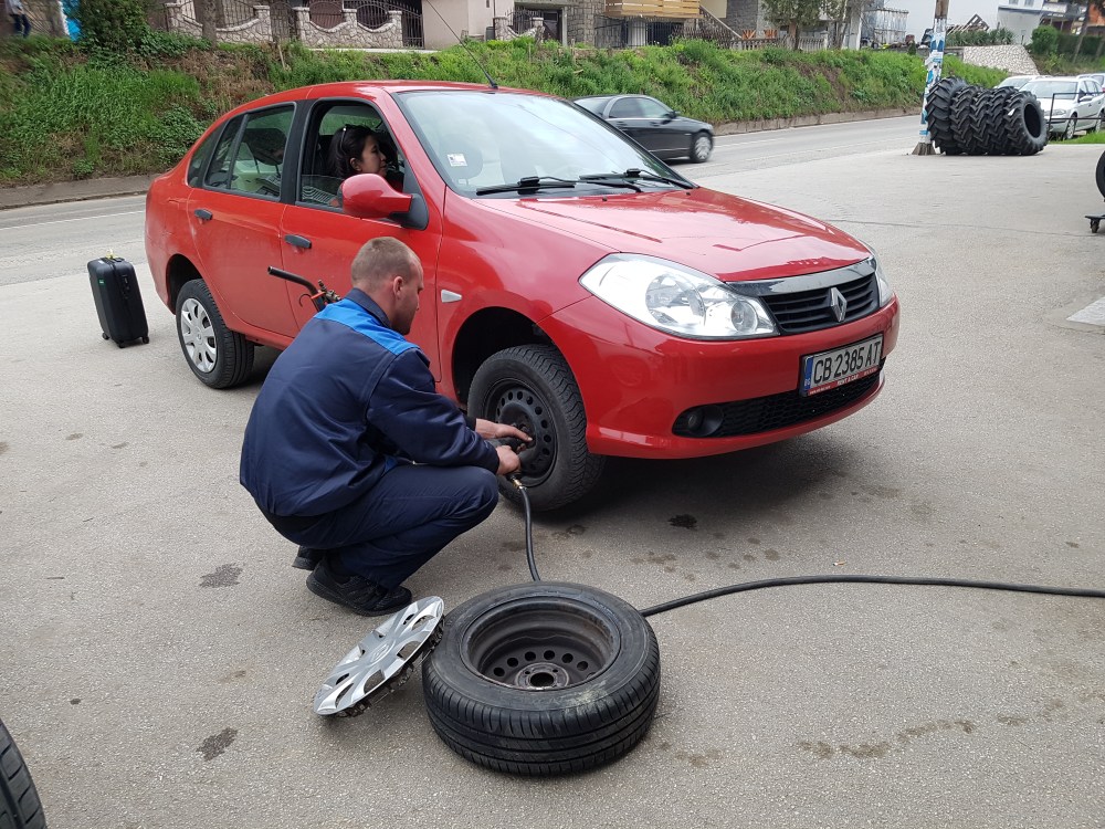 Tak jauh dari pompa bensin, saya melihat ada toko ban lumayan besar. Saya pun mampir untuk memperbaiki ban yang bocor di serbia kemarin. Meski karyawan toko ban nggak bisa bahasa Inggris, dia paham apa yang harus dilakukan saat saya mengeluarkan ban yang rusak dari bagasi. Saya udah terbayang, pasti mahal ganti ban dan mugkin harus ganti velg yang penyok. Toko ban ini alat2 nya lengkap. Cepat sekali kerjanya, velg yang penyok di palu dan di poles dengan mesin sampai bundar lagi.. trus ban nya diisi angin.. horeee.. ternyata nggak sobek.. kemarin itu ban kempes abis rupanya karena velgnya penyok. Setelah selesai dikerjakan, saya ke kasir nanya berapa ongkos reparasi velg dan bongkar pasang ban nya. Kaget banget waktu di bilang ongkos nya… 5 Bosnian Marka. Sekitar Rp 36 ribu saja, murah banget.. Alhamdulillah gak perlu keluar duit banyak buat betulin ban.