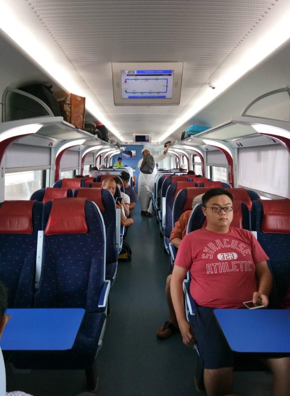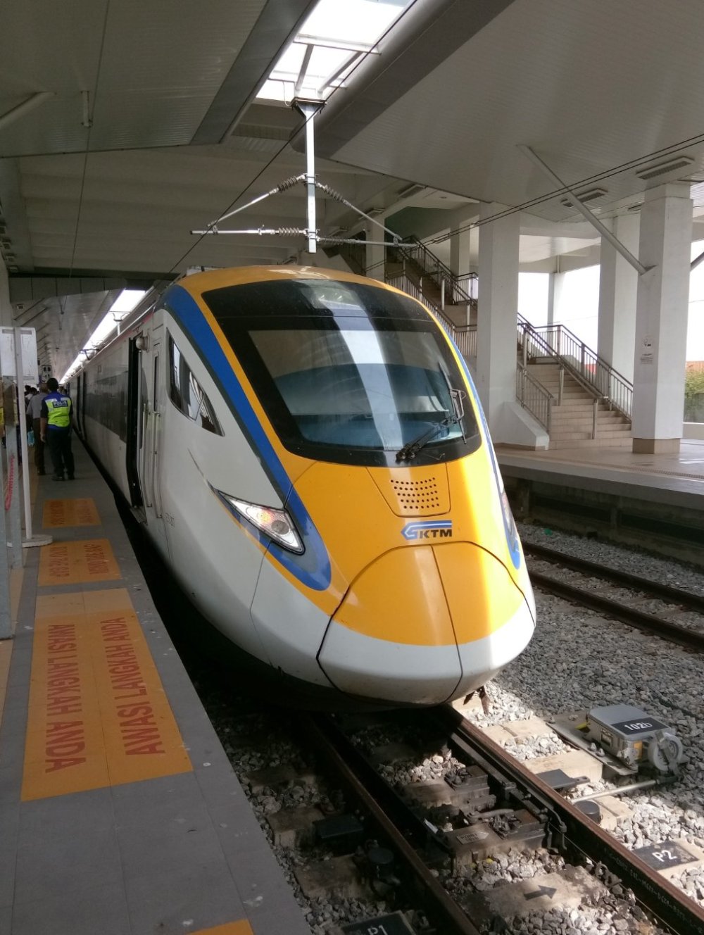 ETS-KTM, electronic train services dari perusahaan Kereta Tanah Melayu akan membawa saya ke Kuala Lumpur. Tepat jam 16.05 kereta ETS2 Gold dengan nomor 9215 diberangkatkan. Pintu gerbong tertutup secara otomatis serentak mengikuti tombol yang ditekan masinis dari ruang kontrol kemudi. Tak lama menunggu kereta mulai bergerak menuju Kuala Lumpur, dari Butterworth menuju Kuala Lumpur setiap penumpang dikenakan tiket RM. 59 untuk dewasa dan RM. 34 anak-anak. ETS menggunakan teknologi unit berganda elektrik sehingga ramah lingkungan. ETS Gold dengan teknologi yang dimilikinya dapat memacu kereta hingga 160 km/jam menghemat waktu tempuh perjalanan hingga setengahnya dibanding kereta biasa.