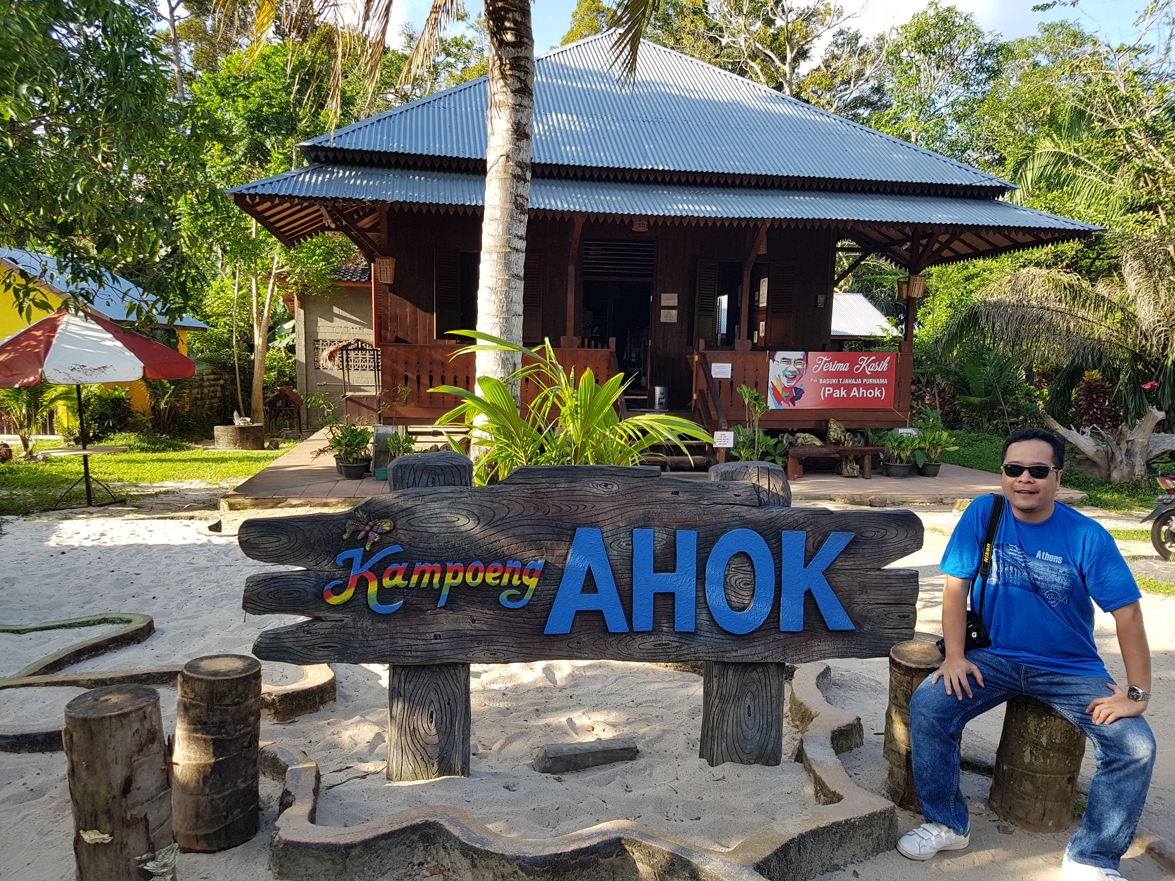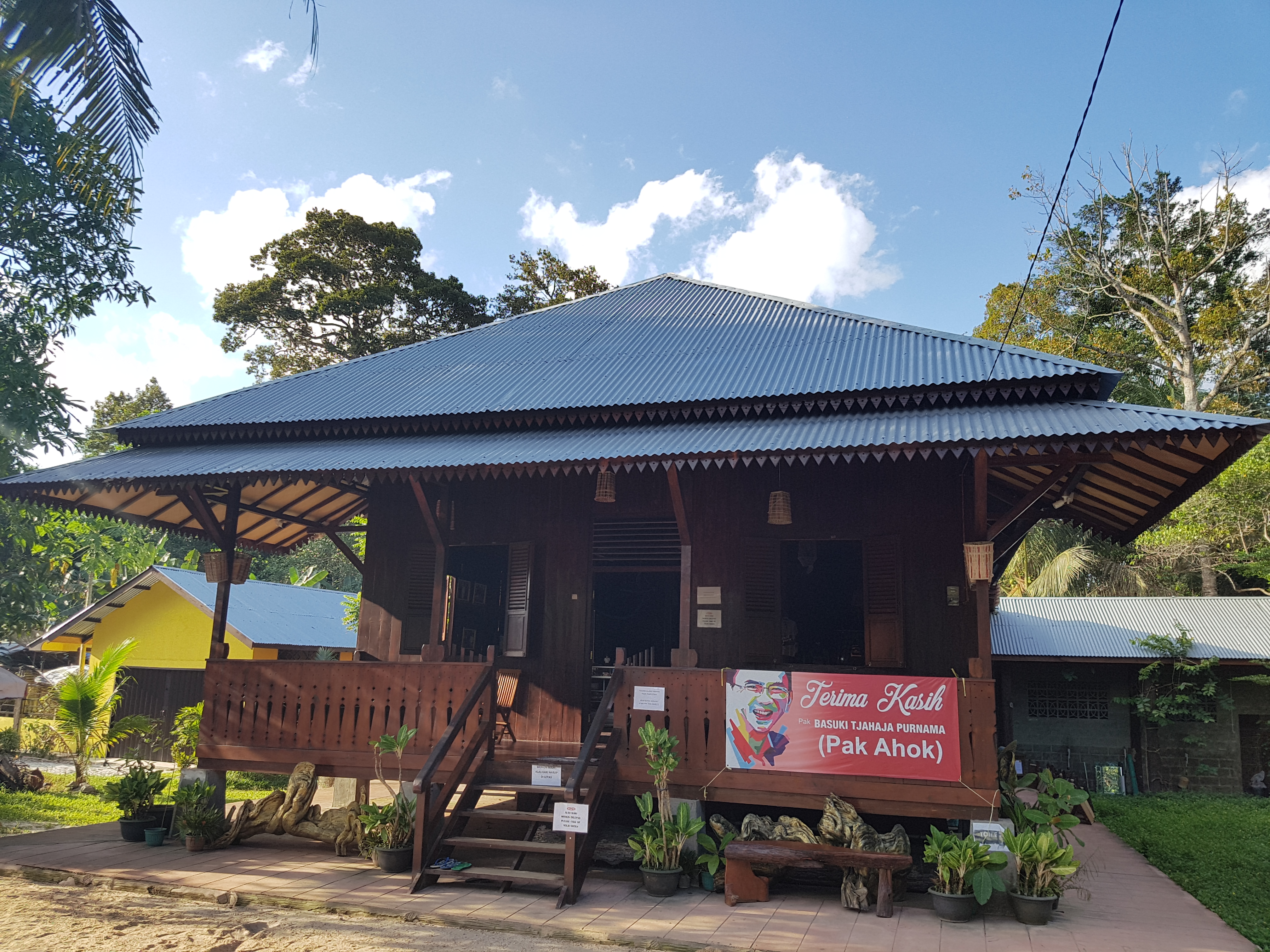 Kami kemudian menuju kampung Ahok, sebuah rumah tradisional Belitung yang memuat banyak memorabilia Ahok. Kampung Ahok ini lokasinya berhadapan dengan rumah megah tempat tinggal ayahanda Ahok. Kini rumah tersebut juga digunakan sebagai galeri batik Simpur.