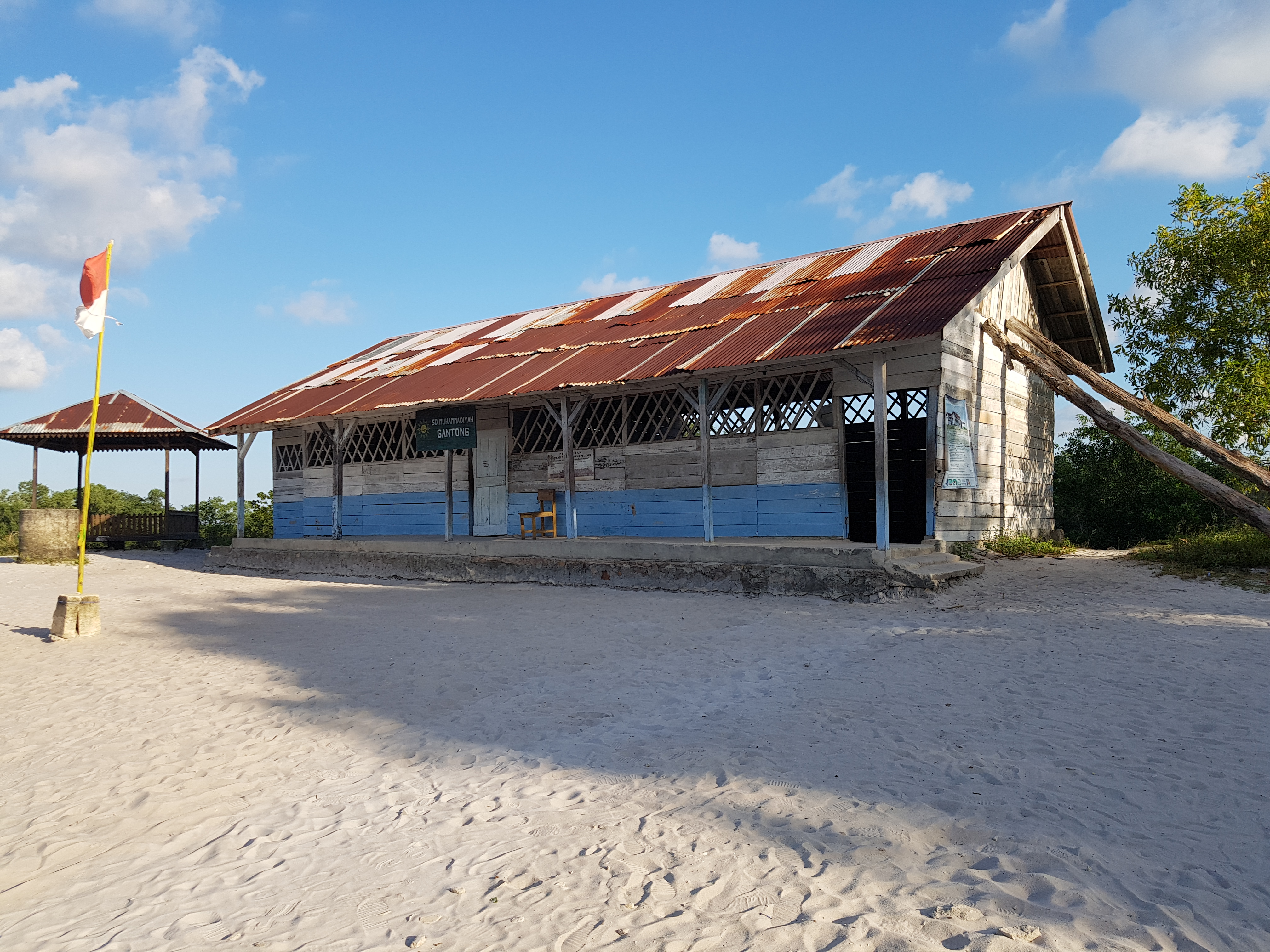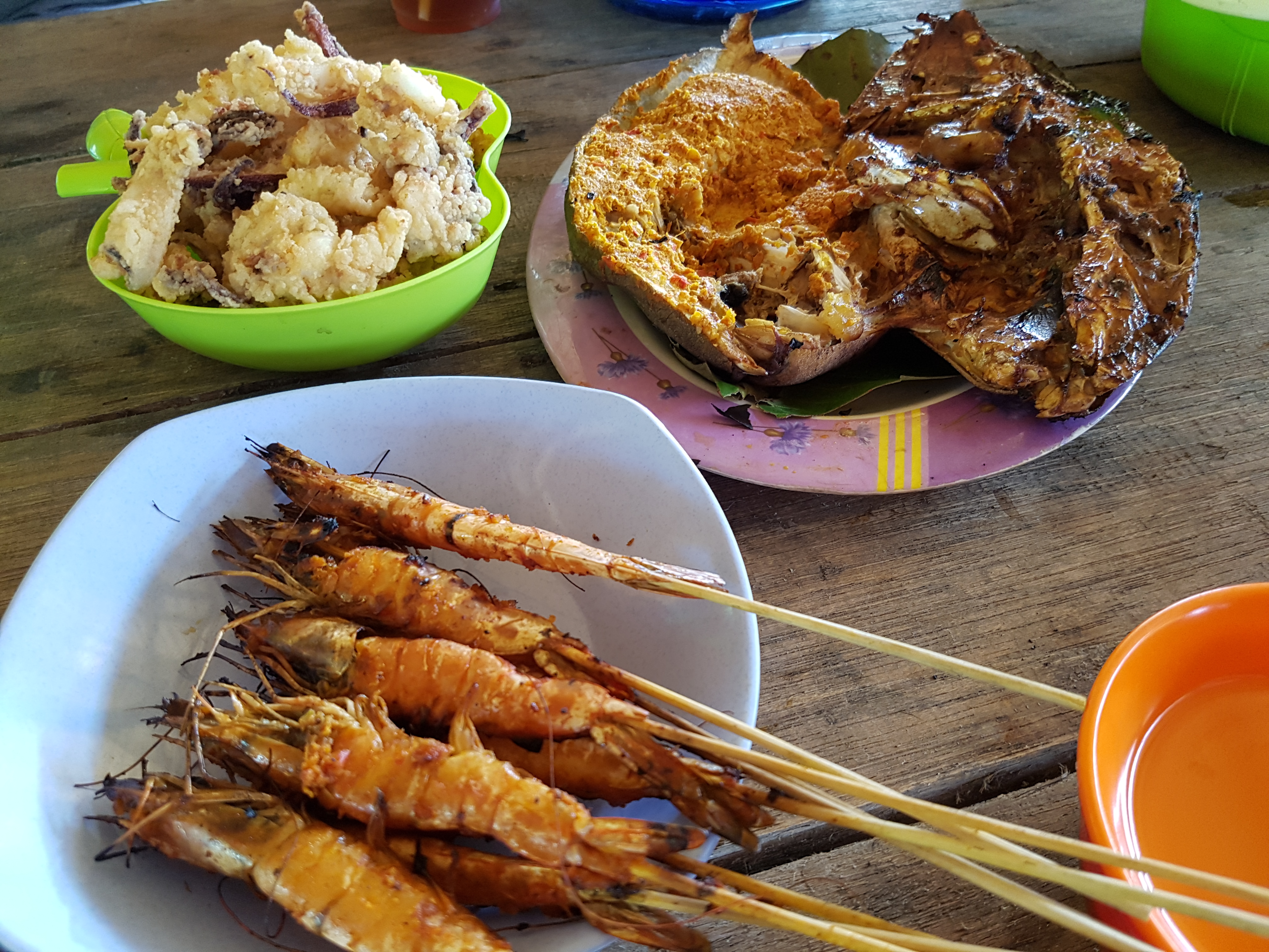 Sekitar jam 12 siang, kami menuju Pulau Gede Kepayang untuk makan siang. Menunya seafood khas Belitung, sup kepala ikan, sate udang, ikan kudu bakar dan cumi goreng. Enak bener menikmati hidangan laut segar di siang terik ini 😀. Pulau Gede Kepayang ini juga merupakan tempat penyu bertelur, di malam hari sering ada penyu yang bertelur di pulau ini. Warga setempat melindungi telur-telur ini untuk ditetaskan menjadi tukik di penangkaran. Jika sudah cukup umur, tukik-tukik ini dilepaskan kembali ke lautan.