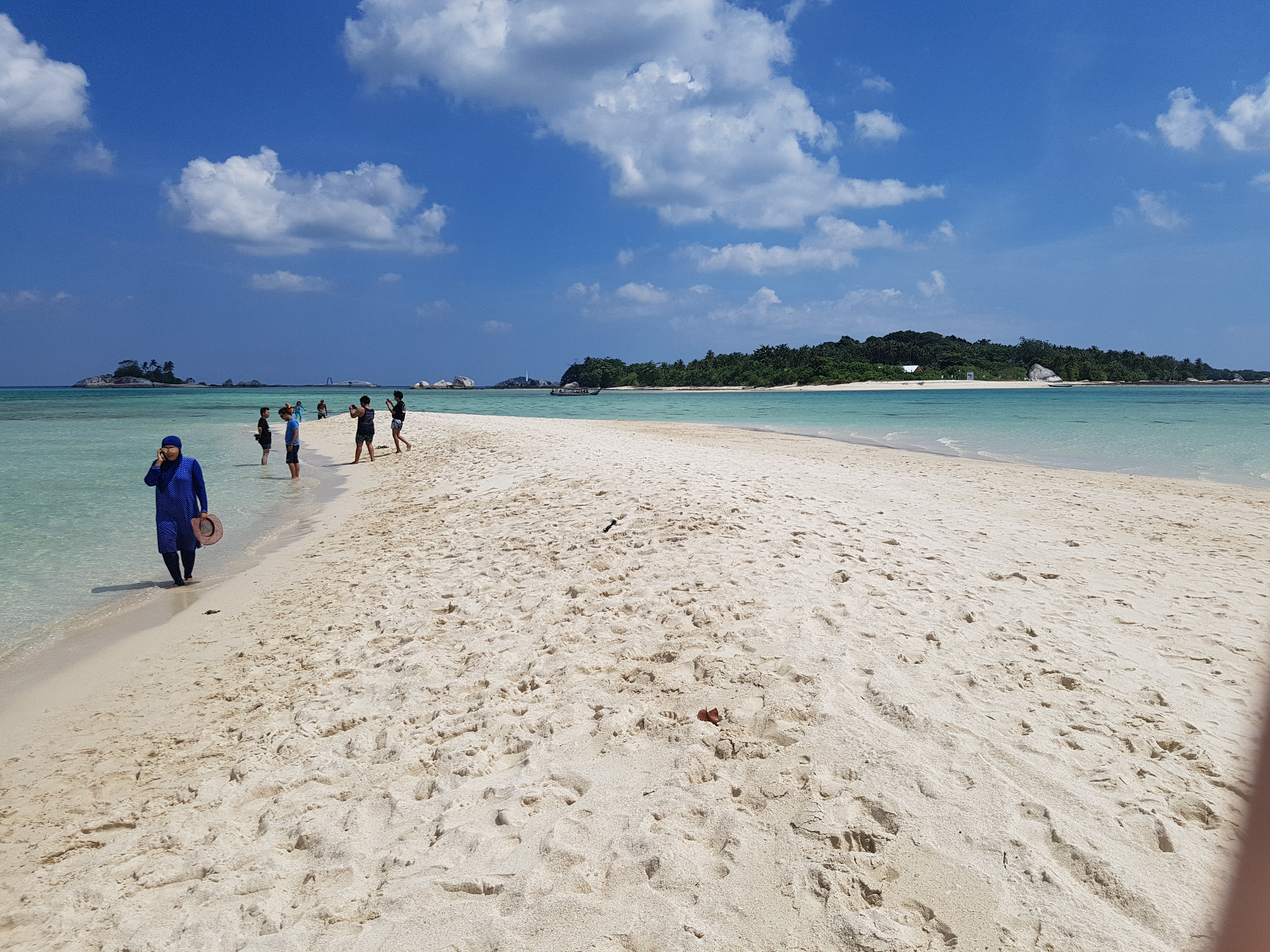 Berikutnya kami menuju Gusong Pasir. Ini adalah pulau pasir kecil yang hanya muncul di pagi hari saat air laut surut. Di sekeliling gusong pasir ini, kedalaman air laut hanya sekitar 30-60 cm, sangat aman dan menyenangkan untuk bermain air, selama tidak melewati batas Gusong yang berwarna biru gelap. Setelah jam 1 siang, kawasan Gusong Pasir ini akan terendam air laut seluruhnya.