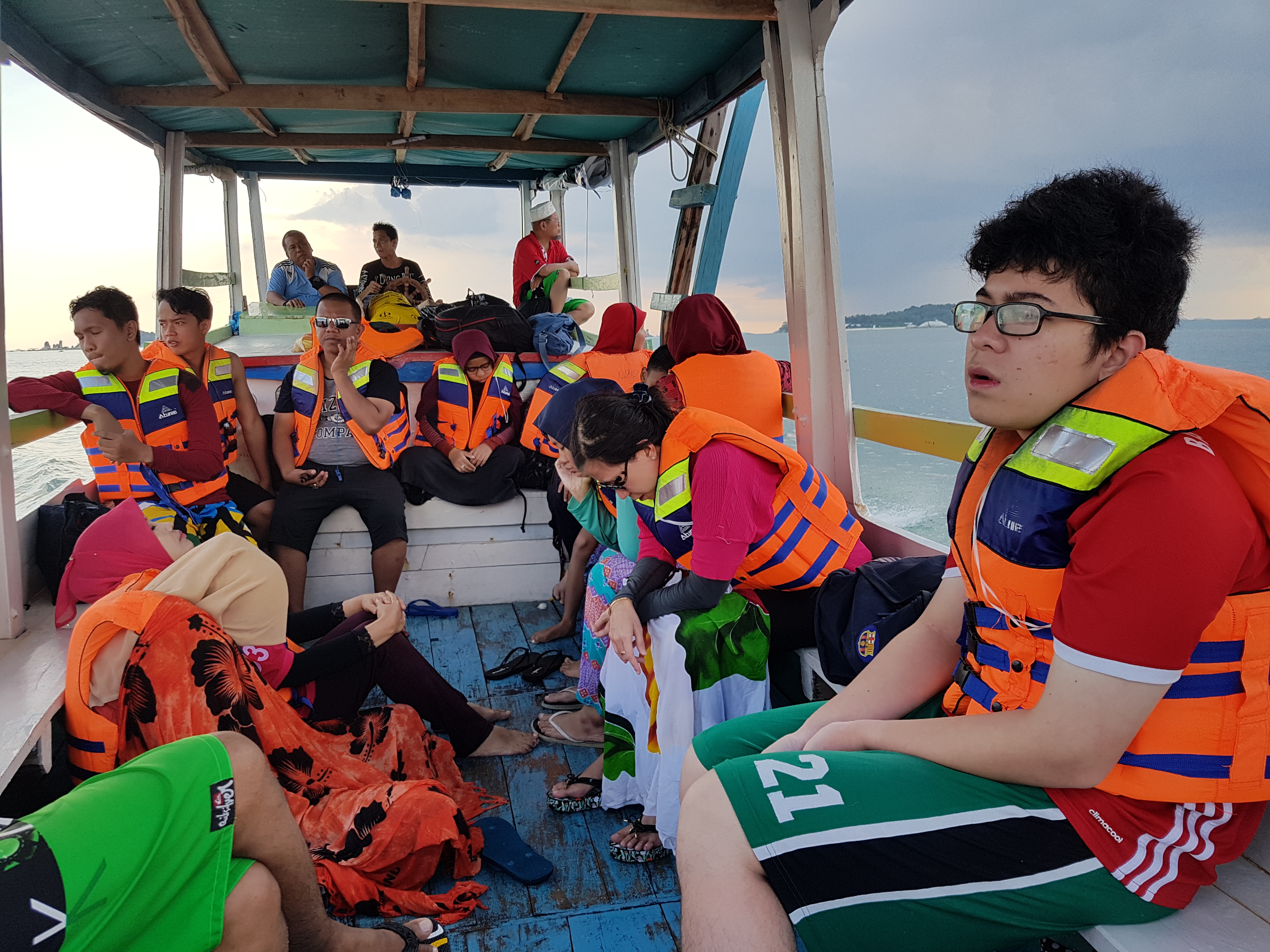 Perahu sewaan kami berangkat sekitar pukul 9.30, tujuan pertama adalah pulau Burong. Menurut warga setempat bentuk batu-batuan di pulau itu seperti burung garuda. Namun karena kawasan pantainya dipenuhi batu tajam, perahu tidak bisa merapat dan wisatawan hanya mengambil foto dari atas perahu.