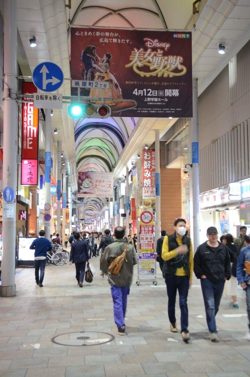 Selesai makan malam, kami melanjutkan berjalan-jalan di kawasan belanja di kota Hiroshima ini. Toko-toko disini kebanyakan buka sampai jam 11 malam. Setelah puas berkeliling, kami kembali ke hotel dengan naik kereta. Keluar dari stasiun kereta, kami melihat seorang pria terjatuh di tangga stasiun, rupanya dia mabuk berat. Kami bantu dia berdiri dan memapahnya. Ternyata dia tinggal di hotel yang sama dengan kami, meskipun mabuk berat, dia tidak henti-hentinya berterima kasih karena kami telah menolongnya, dia terus membungkuk-bungkuk berterima kasih sampai kami masuk lift. Malam itu kami tidur agak cepat, besok paginya kami akan berwisata ke pulau Miyajima dan sorenya lanjut ke Osaka.