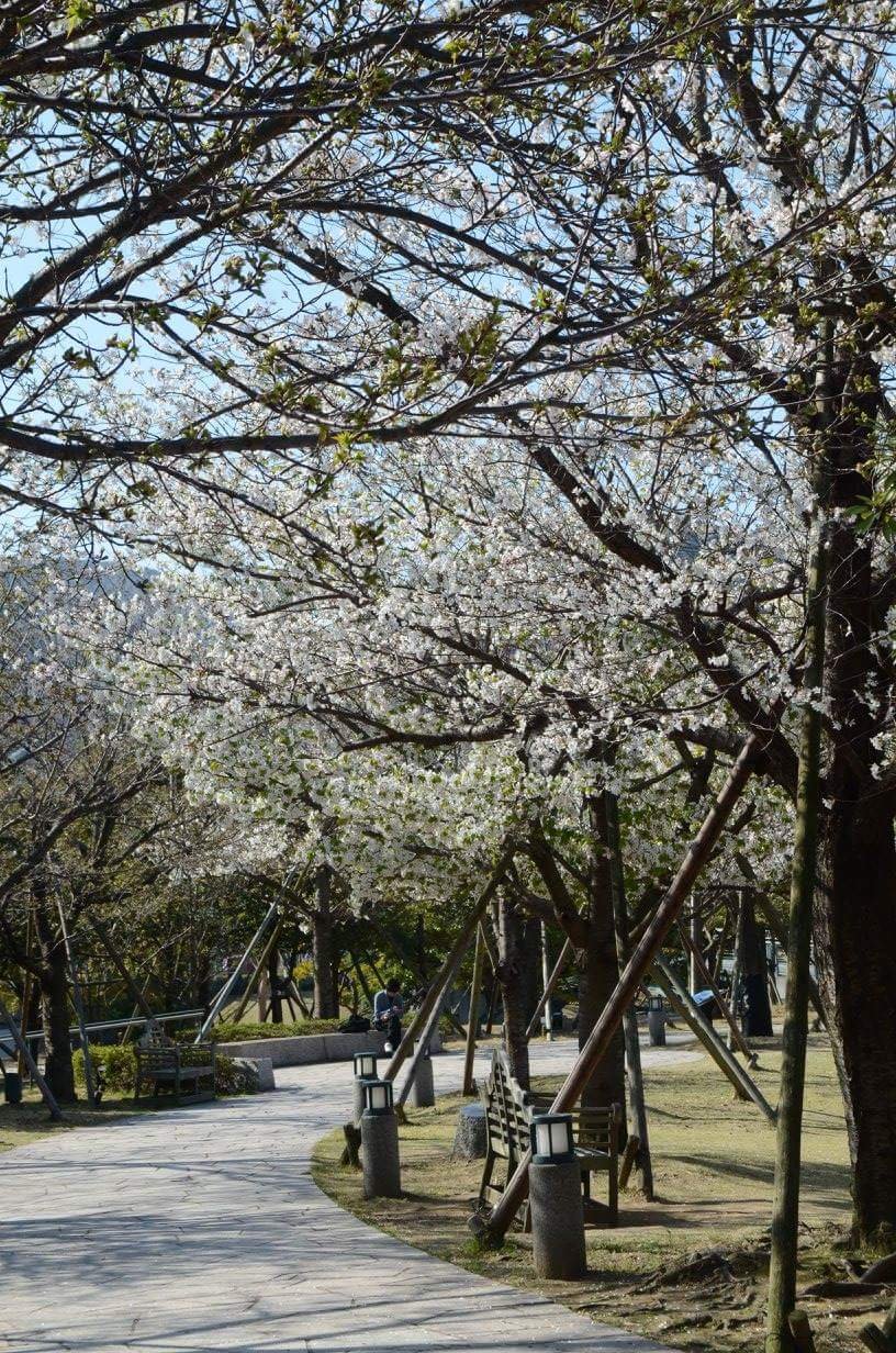 Besok paginya, kami berjalan-jalan di sekitar pelabuhan Nagasaki, melihat kapal layar kayu di pelabuhan, kawasan industri, deretan restoran dan cafe yang pagi itu banyak yang belum buka, dan kemudian mampir ke taman sakura di dekat pelabuhan. Saat itu taman sakuranya baru mulai bermekaran di akhir bulan Maret.