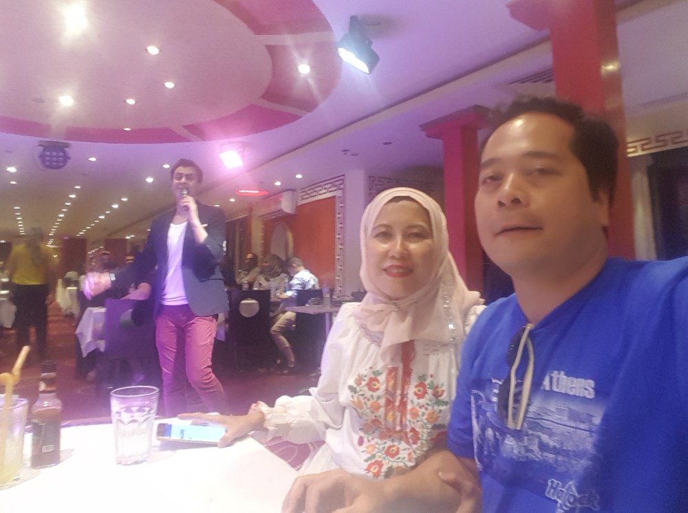 Kemudian tampil Sufi dancer. Awalnya tampil penari bocah lelaki sekitar usia 12 tahun. Setelah beberapa lagu dia menari, kemudian tampil penari Sufi pria dewasa yang lebih entertaining, kostum yang dia kenakan dihiasi lampu-lampu kecil, sehingga saat dia berputar-putar, bagaikan gasing yang menyala 😀 Setelah sufi dancer ini, kembali tampil belly dancer dengan kostum yang berbeda.