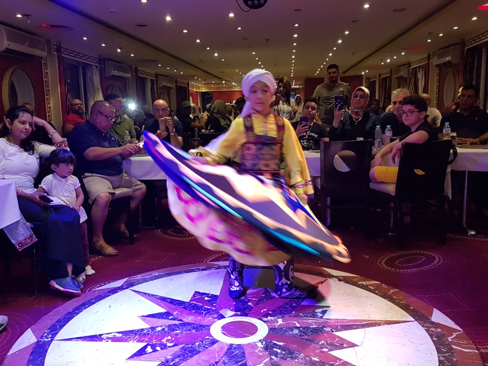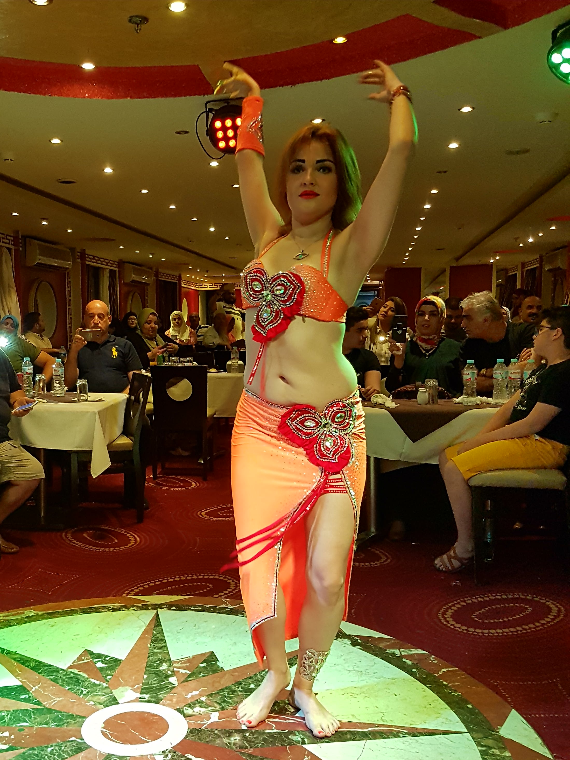 Yang istimewa adalah hiburan di atas kapalnya. Selama kita makan, dihibur dengan musik tradisional mesir, dengan perkusi yang riuh. Setelah sekitar 4 lagu yang dinyanyikan oleh penyanyi pria, kemudian tampil seorang belly dancer, memeriahkan suasana di atas kapal. Belly dancer ini tampil selama 2-3 lagu.
