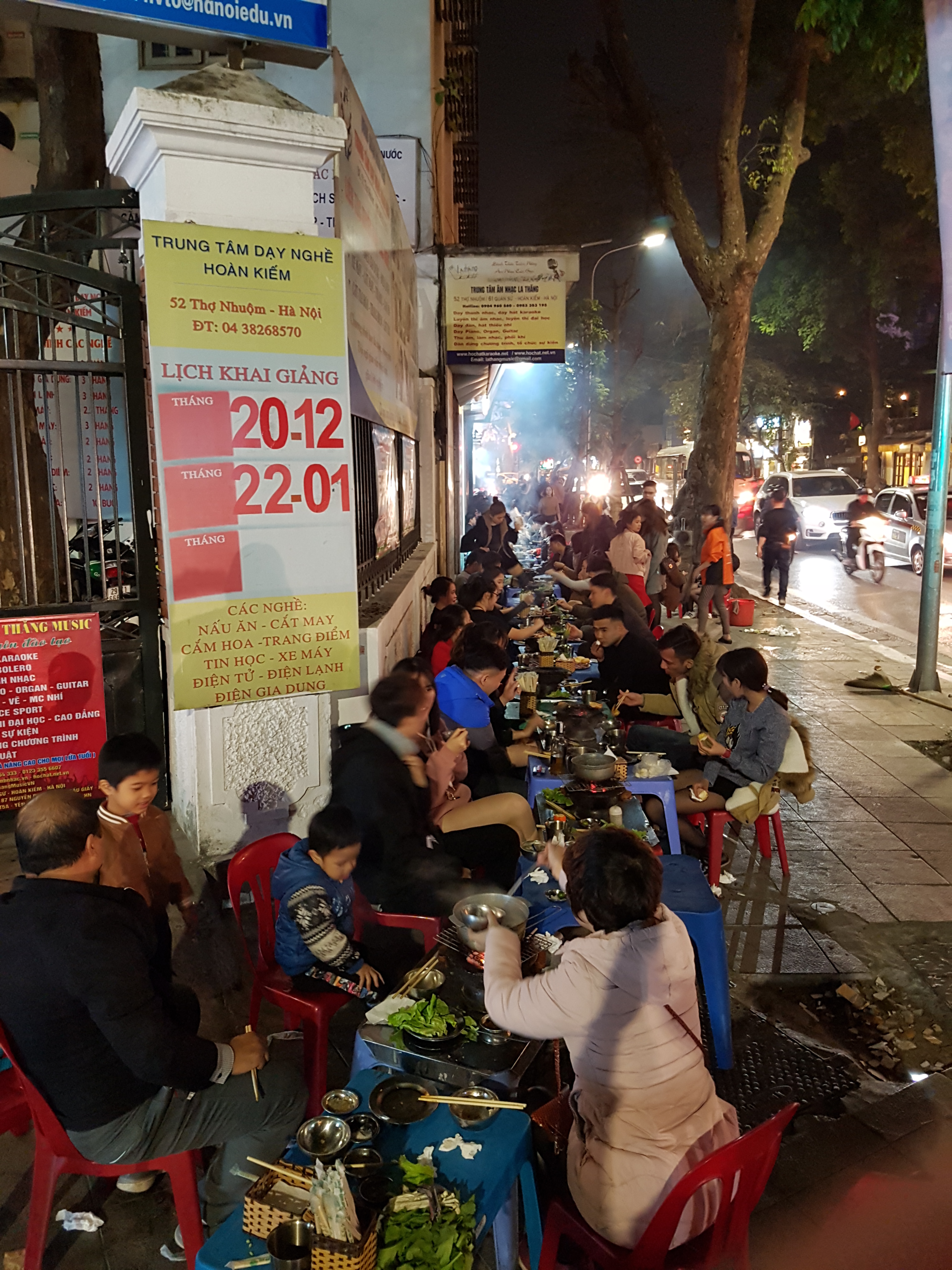 Setelah makan, kami berjalan kaki kembali ke hotel. Melewati banyak tempat-tempat makan di pinggir jalan. Rupanya di Hanoi ini tradisinya makan malam di rumah-rumah makan pinggir jalan, tapi makannya di trotoar. Mirip lesehan di Yogya, bedanya di Hanoi duduknya di bangku-bangku pendek seperti dingklik. Sampai di hotel jam 8 malam, kami beristirahat untuk persiapan wisata besok ke Ha Long bay.