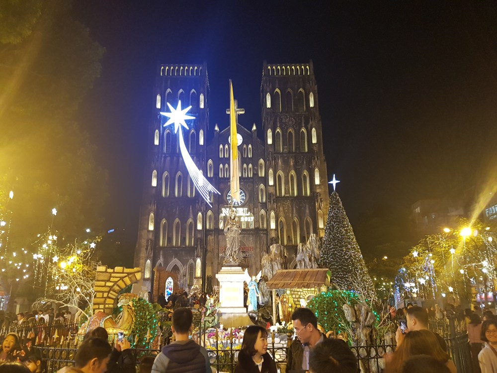 Sekitar jam 4.30 sore kami meninggalkan kawasan Ha Long bay untuk kembali ke Hanoi. Perjalanan pulang ditempuh dalam waktu sekitar 3,5 jam. Memasuki kota Hanoi, saya minta di drop di sekitar danau Hoan Kiem, mau cari kuliner di sekitar situ. Rekomendasi dari tripadvisor adalah resto Duong’s, tapi sampai sana ternyata restonya fully booked. Kami akhirnya makan di resto Alfresco yang menyajikan makanan Italia. Setelah makan, kami jalan kaki menuju hotel, melewati Hanoi cathedral yang suasananya sangat ramai dengan warga yang merayakan natal.