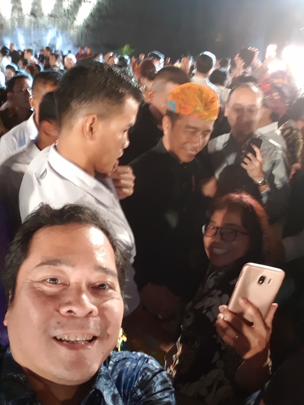 Selesai peresmian GWK, Presiden Joko Widodo berkenan menghampiri para undangan untuk menyapa dan bersalaman dengan pengunjung. Saya cukup beruntung bisa selfie dengan jarak hanya setengah meter dari Presiden.
