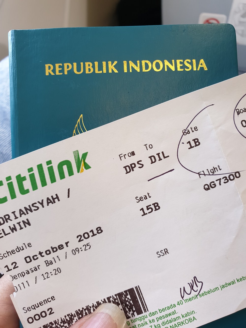 Petualangan saya ke Timor Leste dimulai dari Bali dengan menggunakan maskapai Citilink. Saat check in di Bandara Ngurah Rai, petugas citilink melakukan screening, menanyakan apakah saya sudah pernah ke Dili sebelumnya, kesana mau ngapain dan berapa lama, tiket pulangnya mana, nginep dimana dan bawa uang berapa. Sempet heran juga, udah kayak petugas imigrasi aja nih petugas check in citilink.
