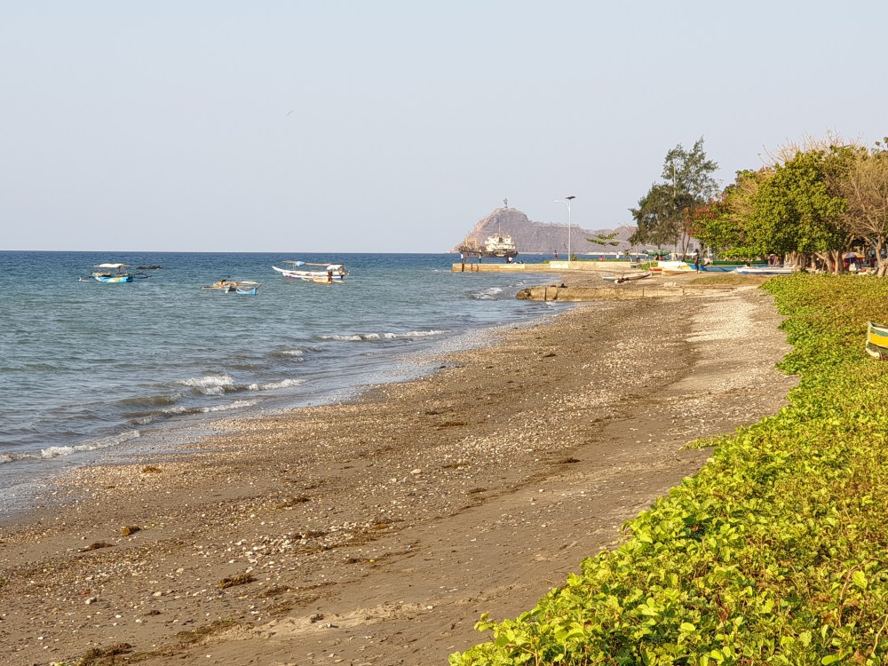 Sekitar jam 4.30 sore, saya melangkahkan kaki keluar hotel. Karena hotel Plaza terletak tak jauh dari pantai Dili, kesanalah tujuan saya di sore yang masih lumayan terik ini. Jalan kaki sekitar 10 menit, saya sampai di pantai Dili.