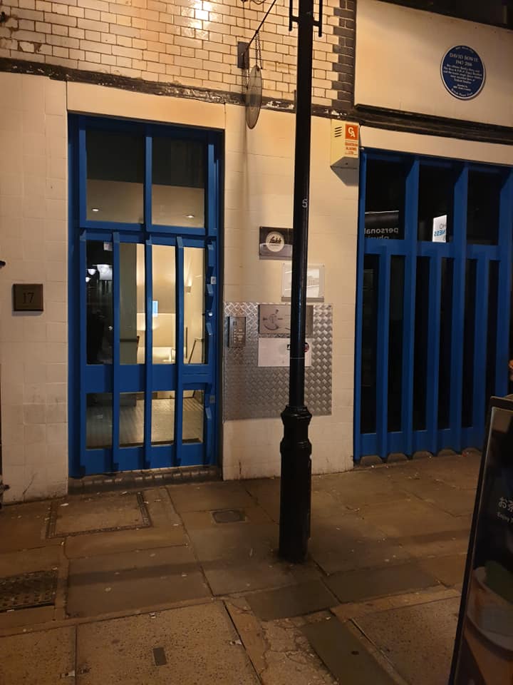 Tangga menuju ruang studio rekaman di Trident Studio, London. Meskipun saat ini tidak lagi menjadi studio rekaman, tempat ini dijadikan lokasi shooting film Bohemian Rhapsody..