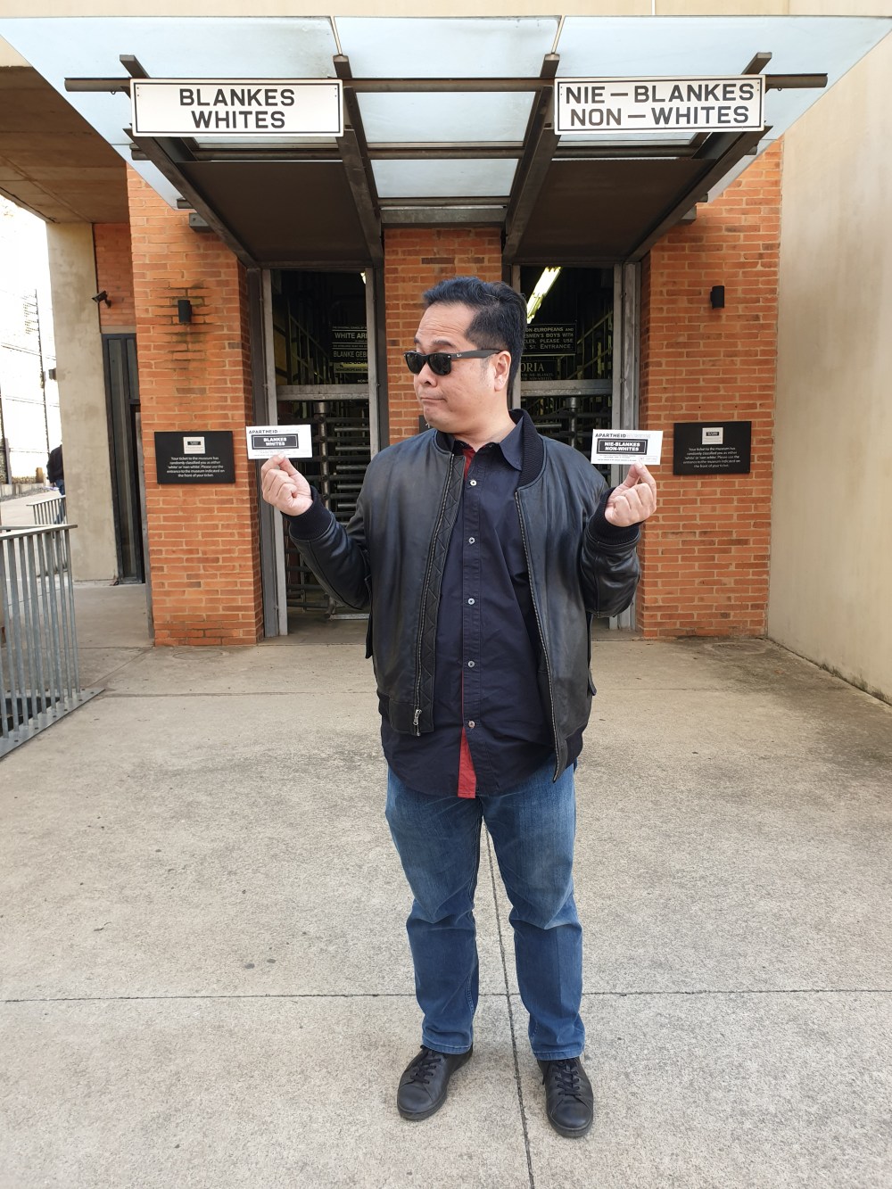Setelah keliling Soweto, kami menuju Apartheid Museum. Museum ini memuat perjuangan rakyat Afrika Selatan melawan politik apartheid yang selama ratusan tahun digunakan warga minoritas kulit putih keturunan Eropa untuk menguasai politik dan ekonomi Afrika Selatan. Salah satu keunikan musium ini, saat membeli tiket seharga 150 Rand, tiketnya secara random memuat tulisan Whites atau Non Whites.
