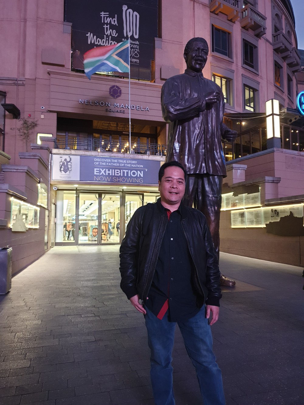 Dari museum Apartheid kami menuju Mandela Square, kawasan plaza di tengah pusat perbelanjaan. Disini ada patung besar Nelson Mandela, pejuang apartheid dan mantan presiden Afrika Selatan. Di kawasan ini juga ada Hard Rock Cafe Johannesburg. Sehari penuh berkeliling Soweto-Johannesburg cukup rasanya untuk melihat landmarks kota ini. Jam 10 malam, saatnya kembali ke hotel untuk beristirahat, sebelum pulang ke Jakarta