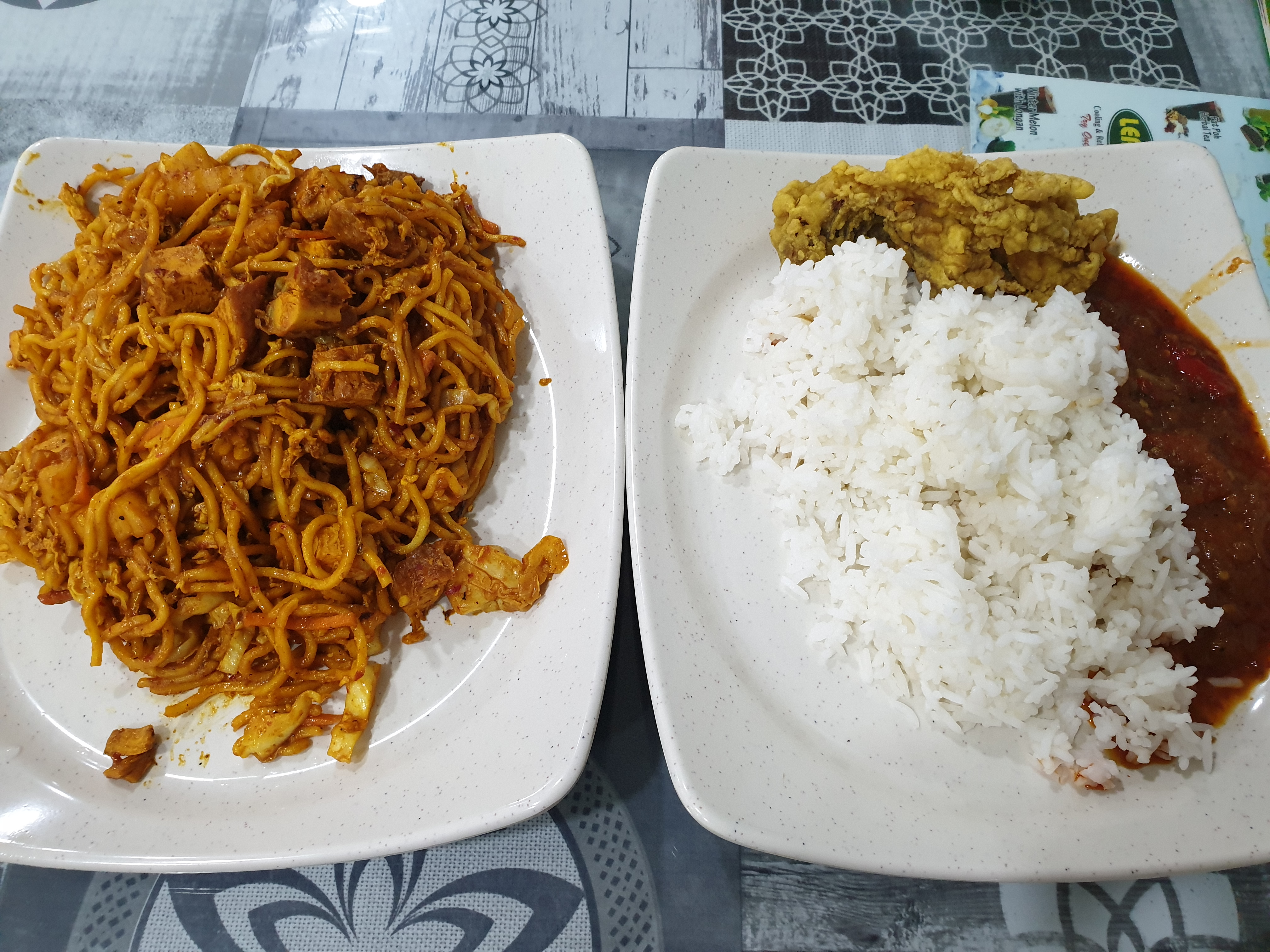 Saya lalu mencari makan malam yang lebih serius. Dari kejauhan saya melihat restoran lokal yang terlihat cukup ramai. Menu khasnya nasi katok dan mie goreng Brunei. Sayapun memesan kedua makanan ini. Saat pesanan datang, alamak.. sajiannya ala Portugal.. alias porsi tukang gali.. banyak banget porsinya. Alhasil, saya tidak mampu menghabiskan pesanan saya, yang penting sudah icp-icip makanan khas Brunei.