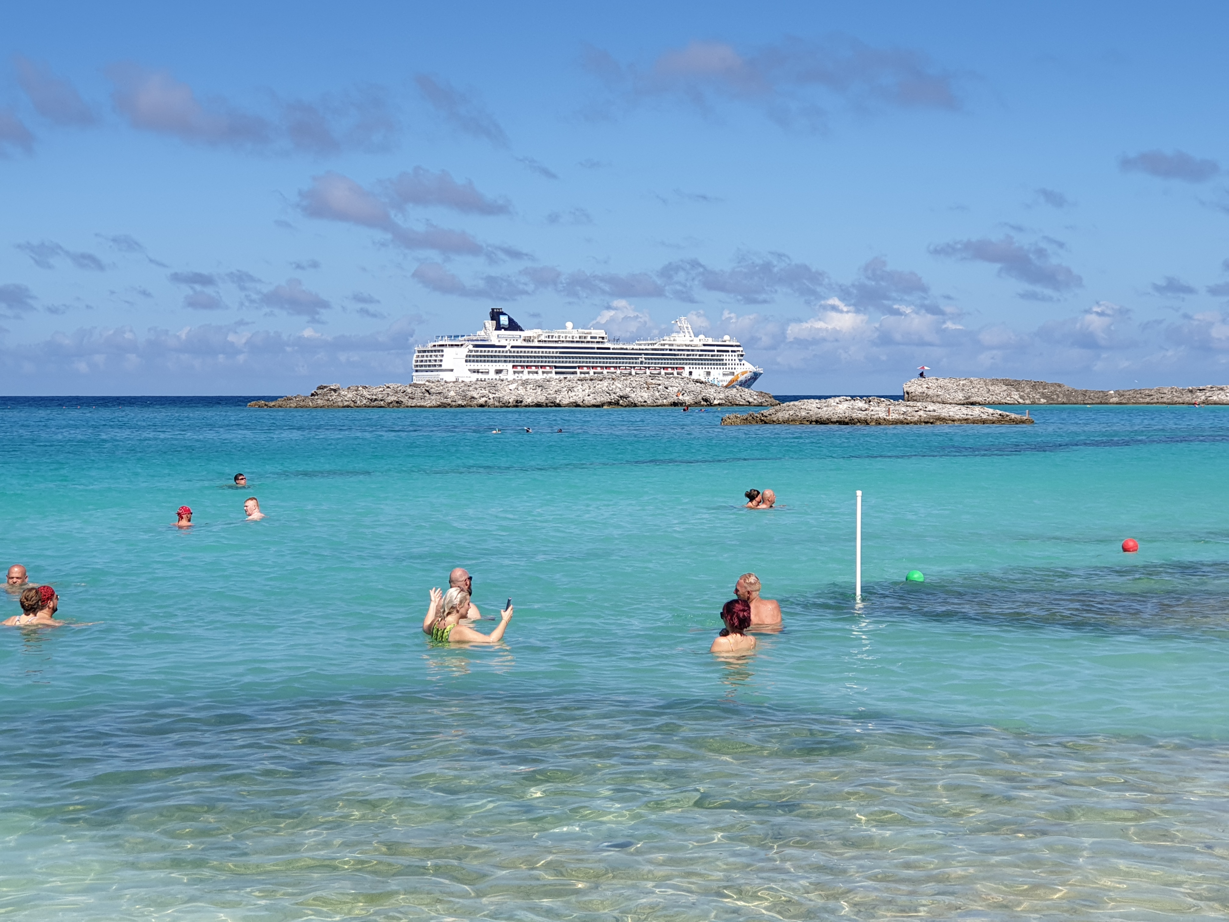 Utamanya, pemilik pulau-pulau di Bahamas ini adalah perusahaan cruiseline besar seperti Carnival, Royal Carribbean dan Norwegian. Oktober – November 2019 saya mengikuti KISS Kruise dengan kapal Norwegian Pearl. Salah satu tujuan pemberhentian kapal adalah pulau Great Stirrup Cay, salah satu pulau yang dimiliki Norwegian Lines di Bahamas.