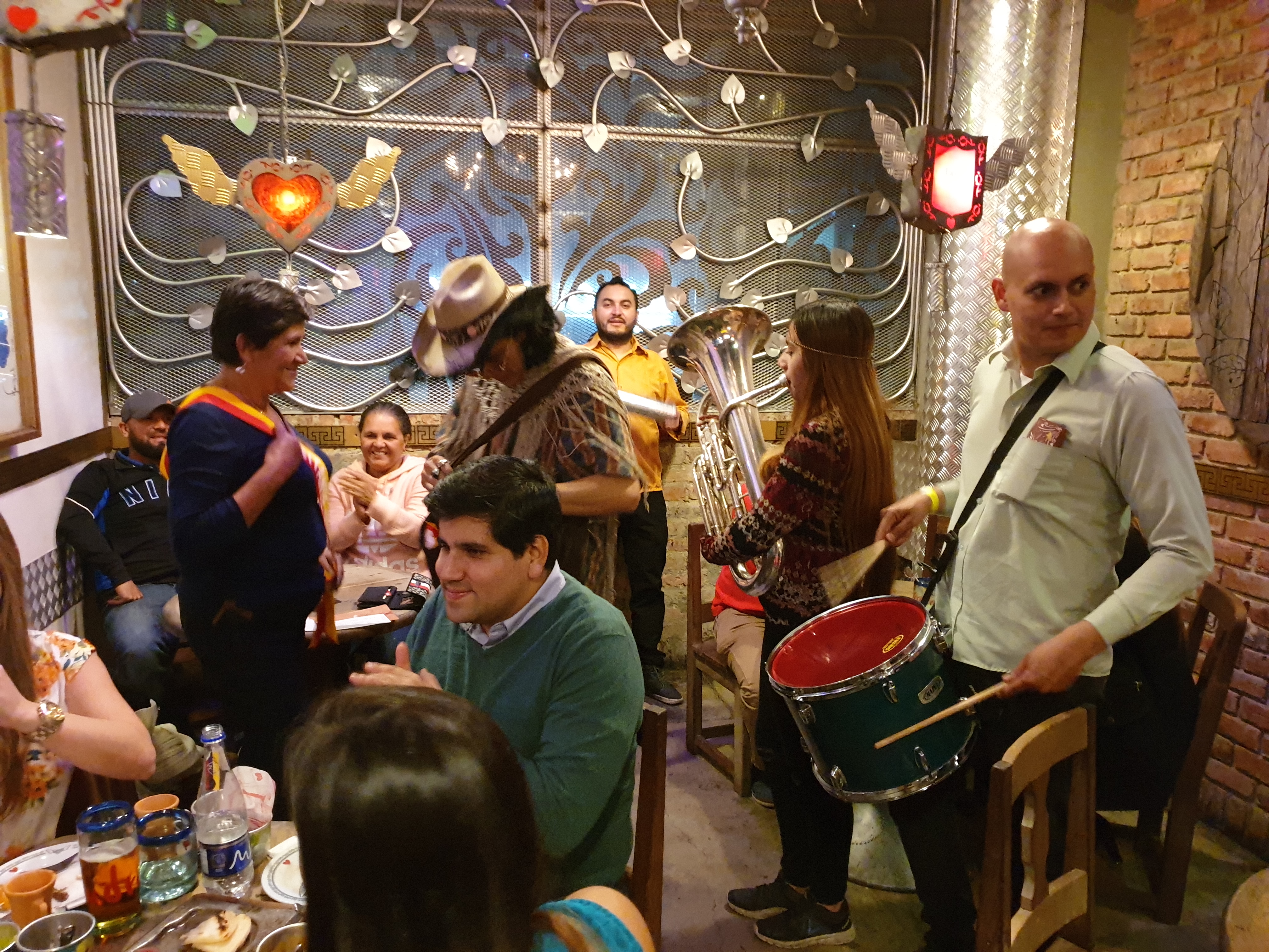 Saya diajak ke Andres DC cafe, cafe 4 lantai bernuansa eclectic, dengan interior berwarna warni penuh pajangan dan aksesoris, namun memiliki nuansa latin yang kuat. Di cafe ini ada live music lagu2 latin, dan ada rombongan musisi yang berkeliling dari meja ke meja. Jika ada yang ulang tahun atau ada pengunjung dari luar negeri, akan disambut dengan lagu dan tarian.