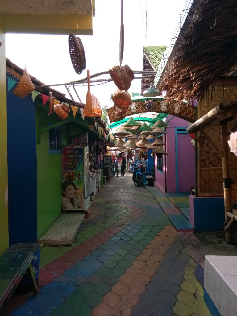 Di kampung pelangi ini terdapat banyak spot spot menarik untuk dijadikan latar selfie bahkan tidak kalah menariknya dengan beberapa spot mancanegara, yang sangat menarik perhatian paling utama tentunya kampung pelangi itu sendiri dari sudut manapun spot spot selfie tidak berbilang, mengitari perkampungan mengingatkan pada perkampungan nelayan di pulau Burano Italia yang terletak tak jauh dari kota Venesia. Rumah rumah nelayan Burano dicat warna warni, biasanya warna yang dipilih para warga sengaja dibedakan dengan warna rumah tetangga sebelah sehingga warna dari tiap rumah tidak akan sama. Asal mula dari warna setiap rumah konon Burano adalah salah satu desa yang memiliki kabut tebal di setiap paginya. Sehingga seringkali nelayan yang pulang melaut kebingungan letak rumah yang mereka tinggali karena kabut yang begitu tebal, mereka mengenali rumah melalui warna cat.