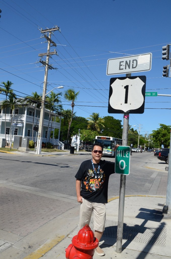 Jalan raya yang menghubungkan Key West dengan daratan Amerika Serikat bernama Route 1. Jalan raya ini membentang sepanjang 3.813 km, dari selatan ke utara, mulai dari Key West sampai ke Maine, perbatasan Amerika dengan Kanada. Titik Mile 0 Route 1 berada di ujung pulau Key West. Road sign Mile 0 merupakan obyek foto paling populer di Key West. Konon, road sign Mile 0 ini sudah berkali-kali hilang dicuri.