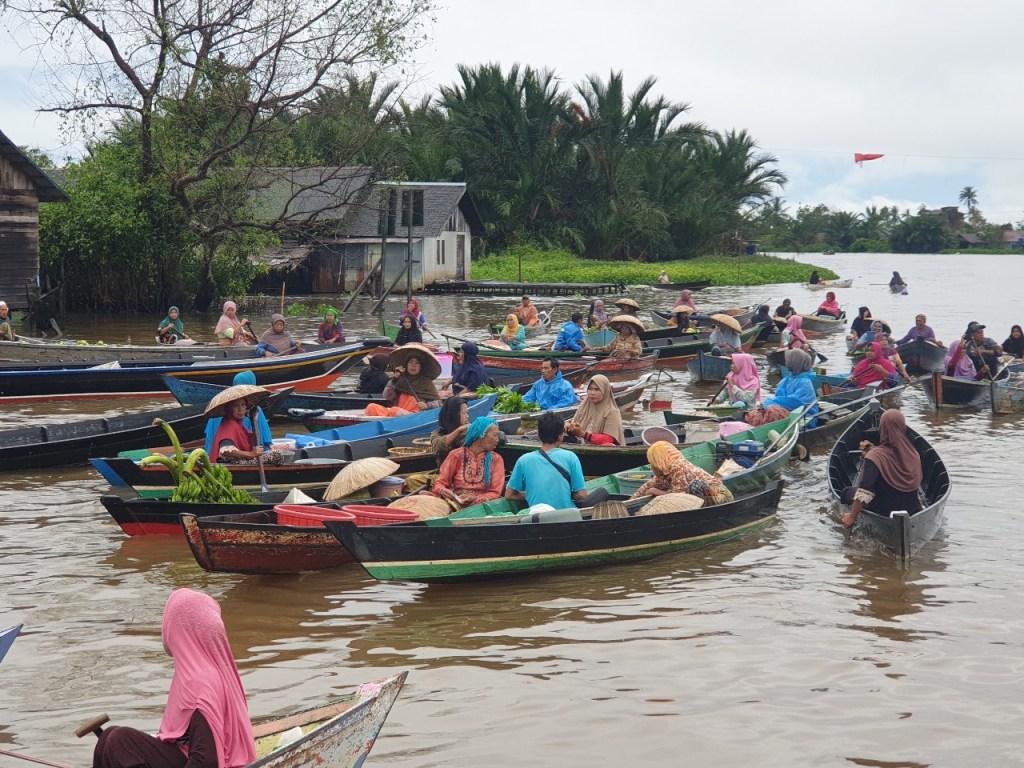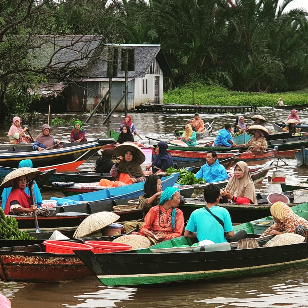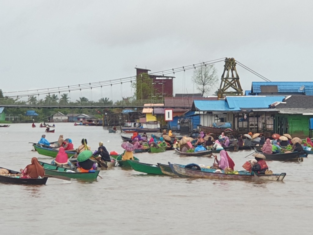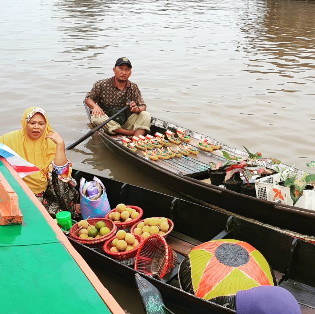 Selain pasar terapung di Kuin, juga ada pasar terapung Lok Baintan, di Martapura, kota yang berbatasan dengan Banjarmasin. Bulan Februari 2021, saya berkunjung ke Banjarmasin, dan kebetulan hotel tempat saya menginap, Swissbel Hotel, menawarkan tour gratis ke pasar terapung Lok Baintan.