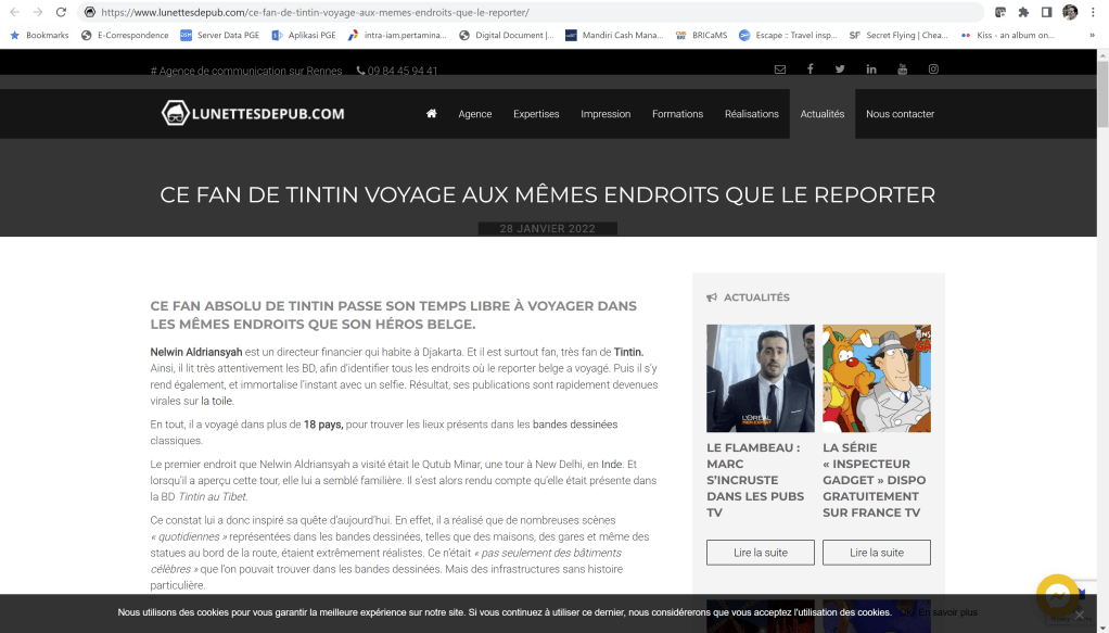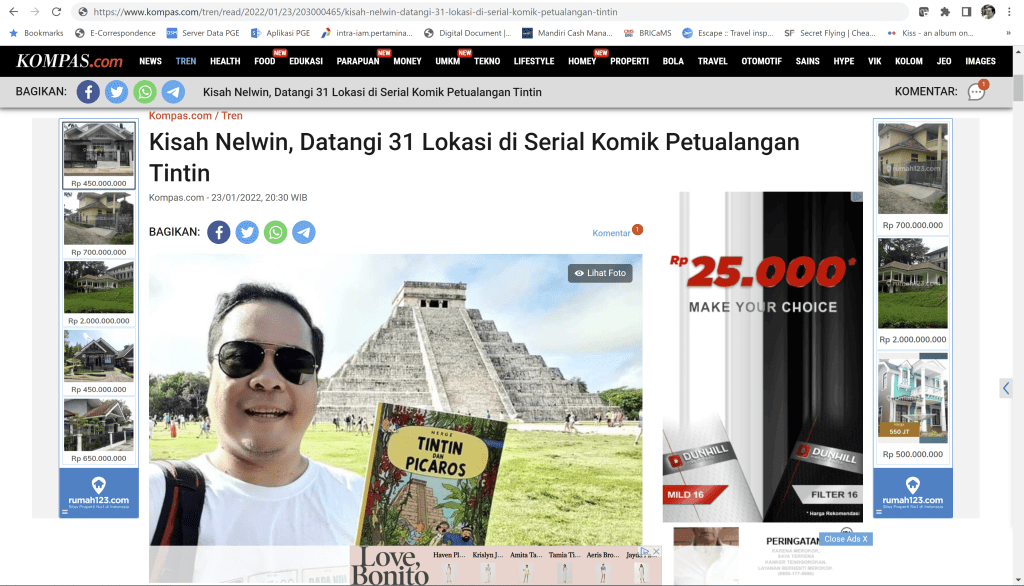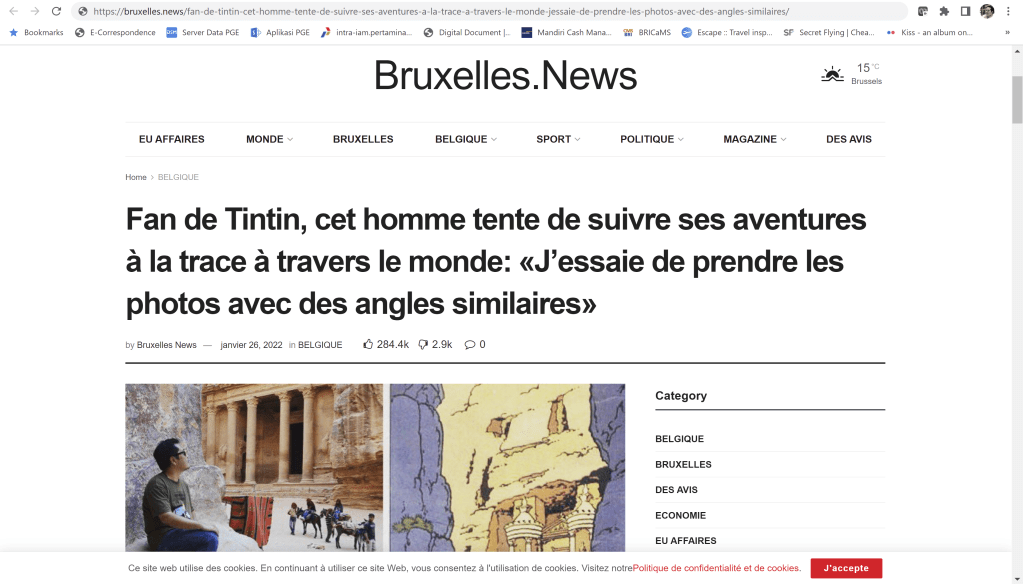 Akhir bulan Januari 2022 lalu, tetiba saya banyak menerima pesan di Whatsapp maupun tag dan mention di Facebook dari teman-teman saya, rupanya ada satu akun Facebook asal Srilanka, yang memposting ulang foto-foto traveling saya mengikuti jejak Tintin di berbagai negara. Foto-foto itu sebetulnya sudah saya post sejak 2019 di akun FB saya maupun di pakansi.com ini, dan pernah saya share di salah satu FB page penggemar Tintin.