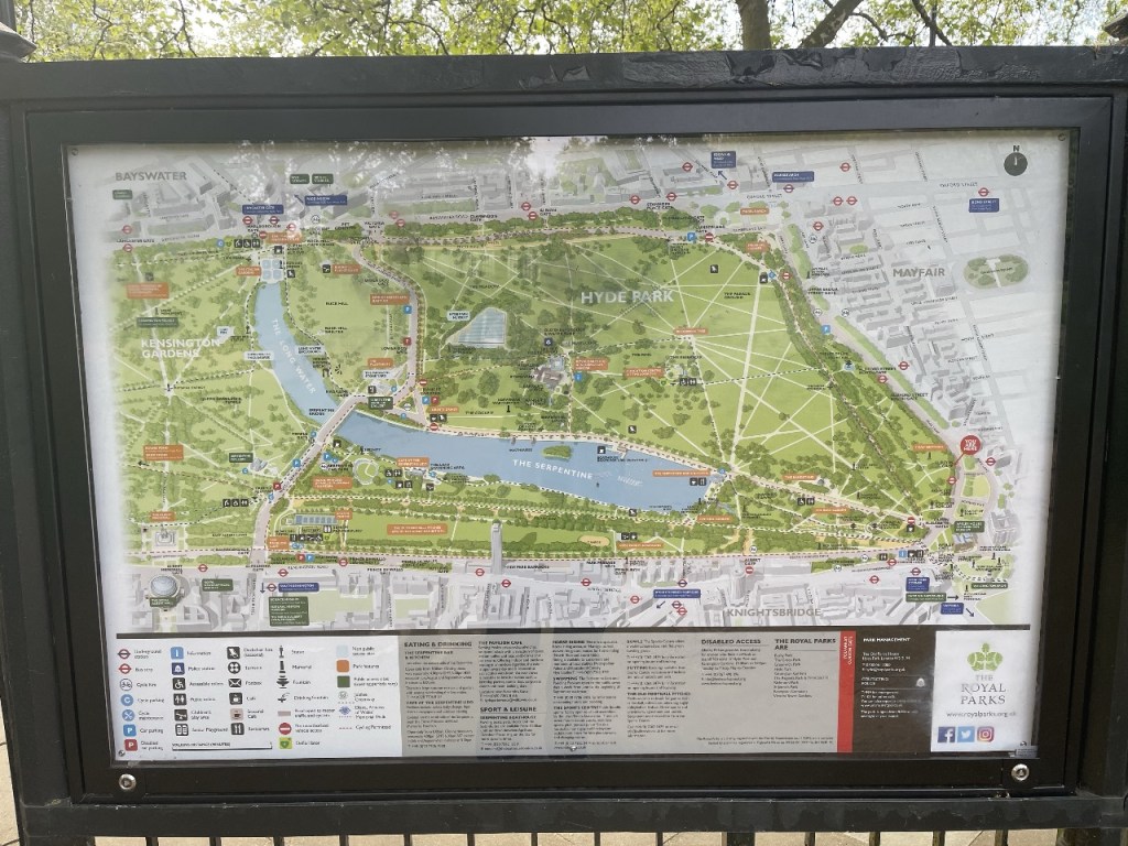 Kebetulan hotel tempat saya menginap dekat dengan Hyde Park. Cukup jalan kaki 10 menit, sudah sampai di taman ini. Jogging sekitar 30 menit cukup membuat badan hangat, sambil melihat-lihat pemandangan di seputar Hyde Park. Selalu menyenangkan berekreasi di taman ini, udara segar, taman yang bersih, kolam-kolam pancuran, banyaknya bangku taman untuk istirahat, serta berbagai art installation membuat kita tak pernah bosan mengunjungi taman ini.