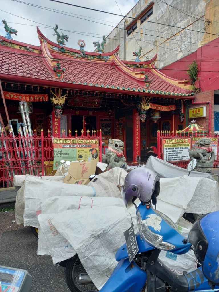 Dibalik riuh dan sibuknya Pasar Gedhe, ditengah himpitan ruko ruko nan tinggi dan kaku, ada sebuah bangunan klasik berarsitektur Tiongkok yang didominasi warna merah dan emas, kelenteng Tien Kok Sie namanya, terletak di Selatan pasar atau jalan RE Martadinata. Semua tahu keelokan kelenteng tapi, berapa banyak yang tahu jika bangunan khas Tionghoa itu disebut sebagai kelenteng tertua di Indonesia. Kelenteng konon dibangun antara tahun 1745-1748 dibangun bareng dengan pembangunan Keraton Kesunan. Dari luar, kelenteng itu tidak jauh berbeda dengan kelenteng pada umumnya, tanahnya adalah hibah Sunan Solo. Begitu menapakan kaki ke dalamnya, kelenteng tak ubahnya lorong waktu untuk kembali mengenang masa awal berdirinya kota Solo. Tak jauh dari kelenteng ditemui Sudirodiprajan tepatnya di Kampung Balongan merupakan Kawasan Tionghoa pertama di Indonesia.