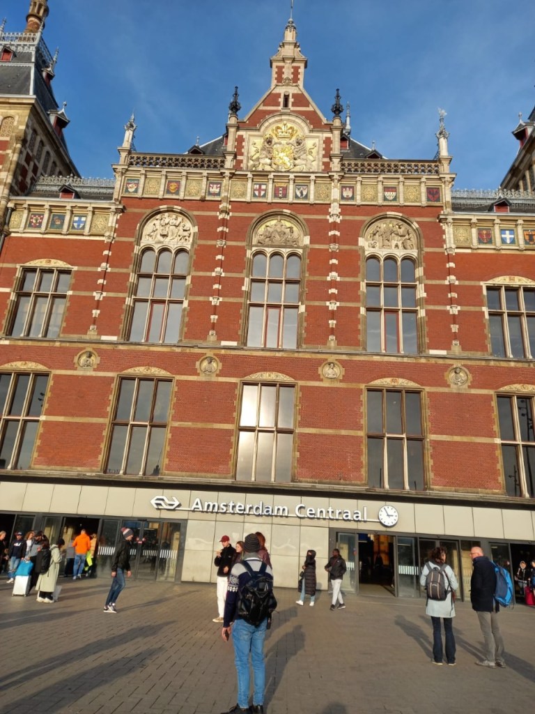 Blusukan kota dimulai dari stasiun pusat Amsterdam (Amsterdam Centraal), selain sebagai stasiun pusat kereta, tempat ini juga pusat kendaraan umum seperti bis, kereta bawah tanah, trem juga ferry. Dari stasiun ini orang orang bisa bepergian ke beberapa negara lainnya seperti Paris, Brussel, Frankfurt, Berlin dan kota kota lainnya. Dihadapan stasiun menyeberangi kanal berdiri hotel Victoria, kami bernostalgia dengan hotel tersebut yang pernah diinapi puluhan tahun lalu tepatnya di tahun 1992. Menyusuri trotoar samping hotel, Damrak, adalah jalanan penghubung utama antara stasiun dan Dam Square. Segala macam bisa ditemukan sepanjang Damrak, dari bangunan bangunan tua, kanal, toko souvenir, makanan cepat saji, pasaraya (department store) dan lain lain. Perjalanan sampai di Dam Square, inilah jantung atau alun alun kota Amsterdam. Dibandingkan dengan kota-kota lain di Eropa, Dam Square tidak ada apa apanya, tapi belum ke Amsterdam namanya kalau belum ke tempat ini.