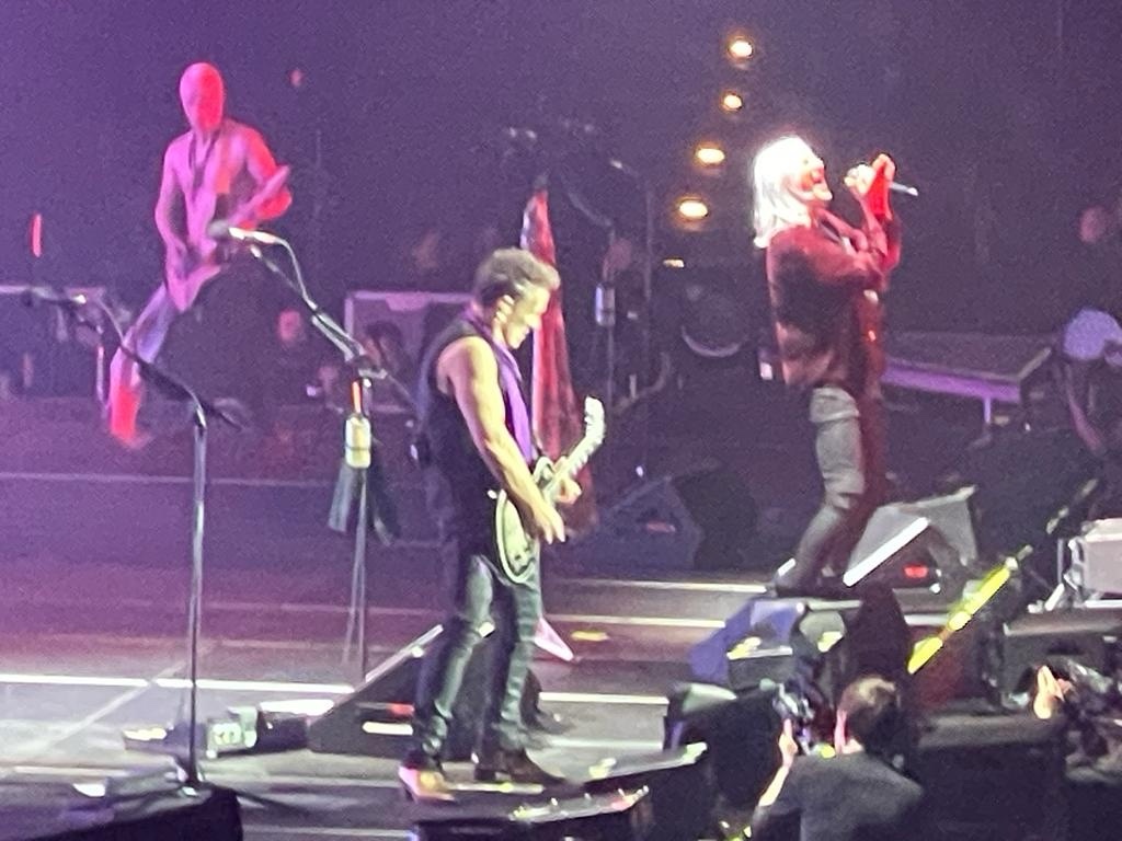Tempo konser sedikit melambat di lagu berikutnya “Foolin”. Namun segera dihajar dengan hits andalan dari album ‘Hysteria’, “Armageddon It” dan “Kick” dari album anyar rilisan 2022. Kemudian lampu panggung diredupkan, terdengar petikan arpeggio intro lagu “Love Bites” yang riuh disambut nyanyi bareng penonton, sayapun teringat kembali masa remaja saat lagu ini memuncaki tangga lagu Billboard Hot 100 Singles pada 35 tahun silam. Konser kemudian dilanjutkan dengan “Promises” dan “This Guitar”, saya perhatikan, banyak penonton yang kurang familiar dengan kedua lagu ini menggunakan kesempatan untuk toilet break ataupun membeli makan dan minum di teras arena.