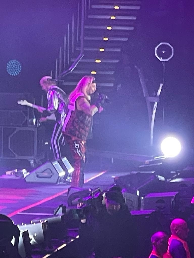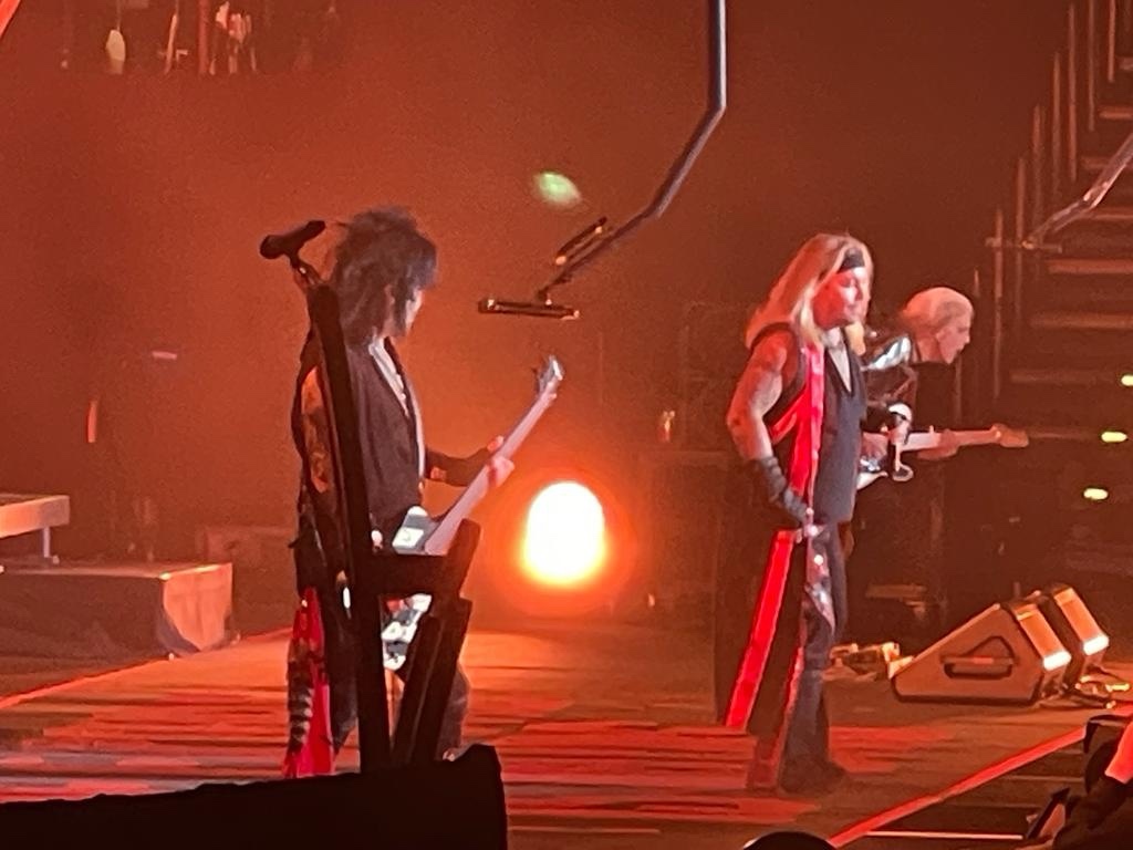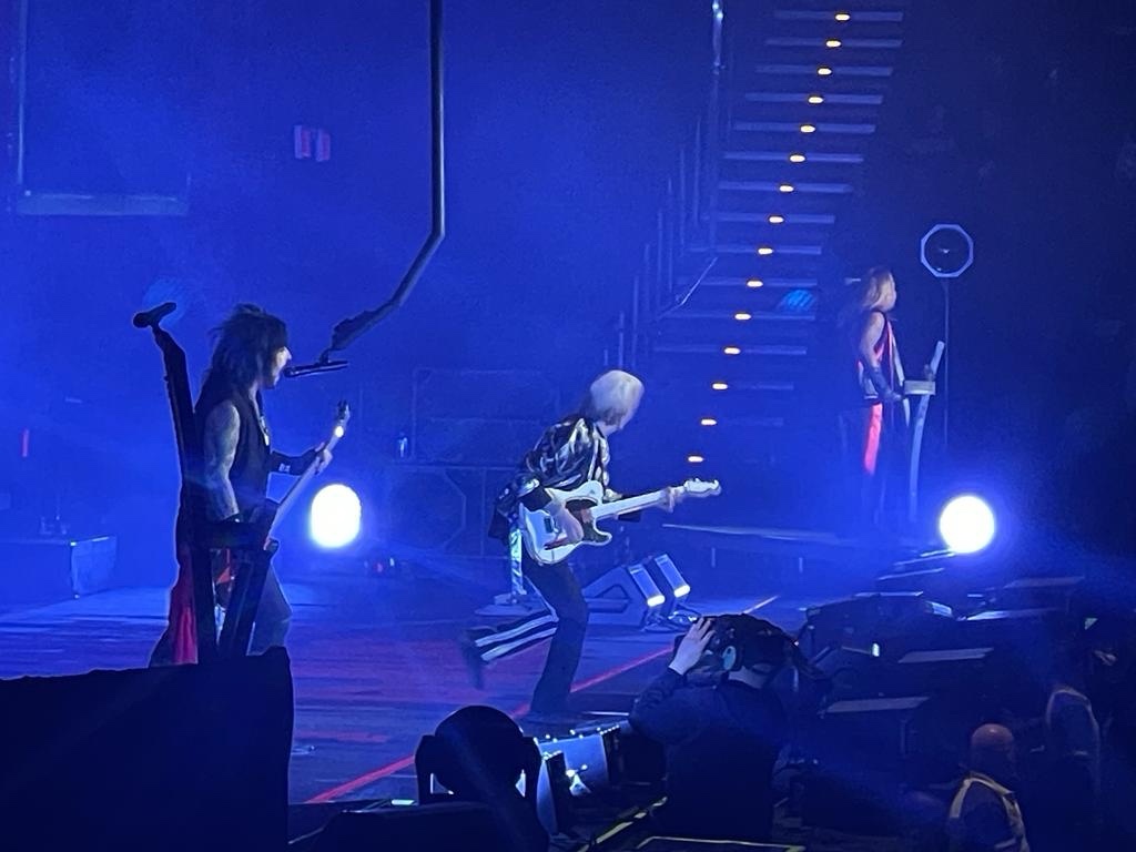 Kelar penampilan Def Leppard, panggung dibereskan untuk persiapan set Motley Crue. Saat panggung Motley Crue mulai disiapkan, saya melihat setting drums set Tommy Lee sangat sederhana, berarti malam ini tak akan ada aksi roller coaster drumming yang sebelumnya digunakan saat stadium tour tahun 2022. Sekitar 45 menit jeda persiapan panggung Motley Crue, jam 10:45, monitor besar dipanggung menyiarkan breaking news, tanda konser Motley Crue akan segera dimulai.