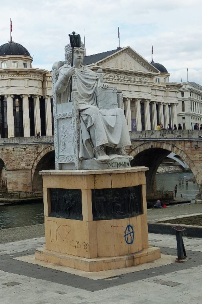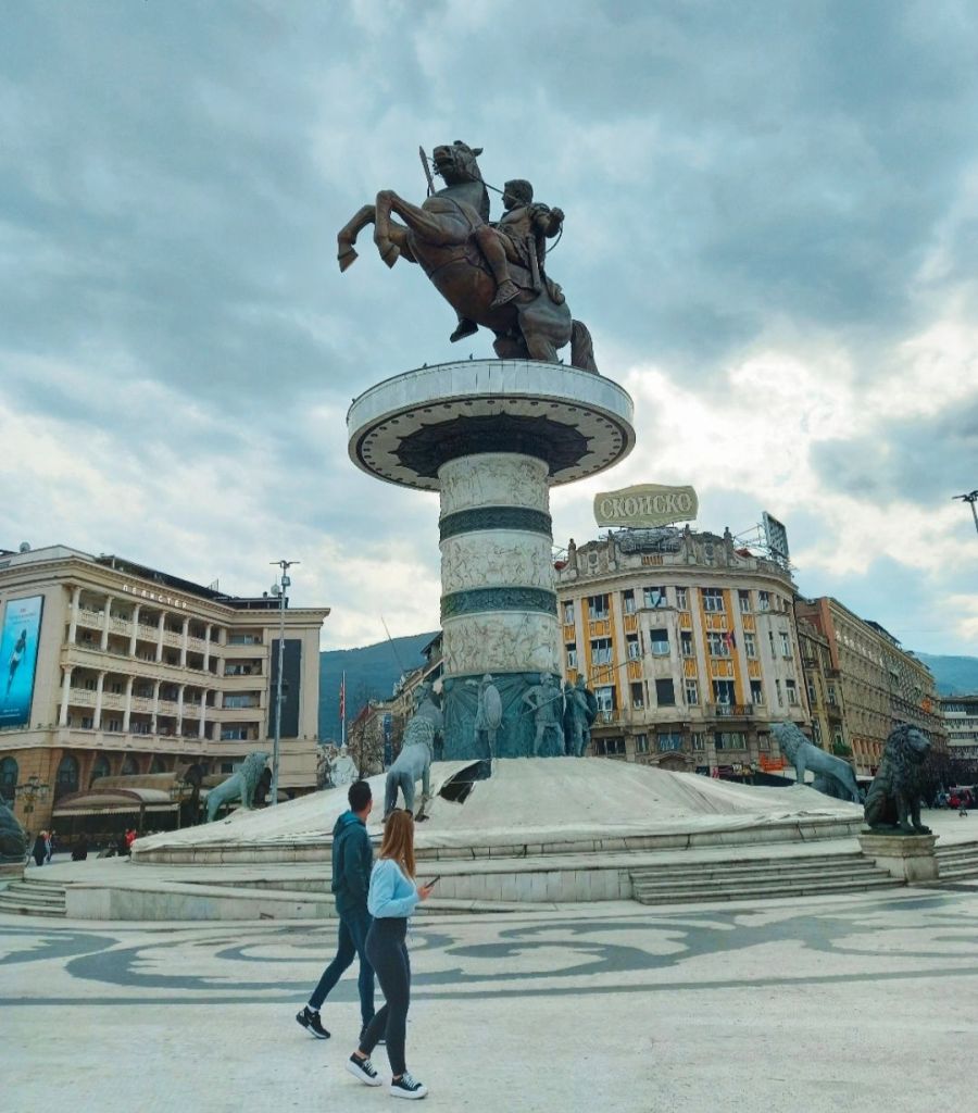Di ujung jembatan, kamu akan langsung sampai di Macedonia Square. Di sini berdiri patung raksasa Warrior on a Horse yang sering dikaitkan dengan Alexander Yang Agung. Sosok legendaris kelahiran Makedonia ini dikenal sebagai penakluk ulung yang dalam waktu singkat berhasil memperluas kekuasaannya hingga ke Persia, Mesir, bahkan mendekati India. Walau namanya tidak disebut secara resmi, banyak orang yakin patung ini adalah dirinya.