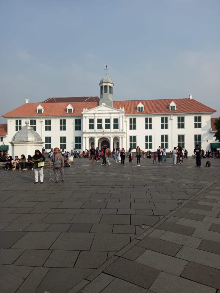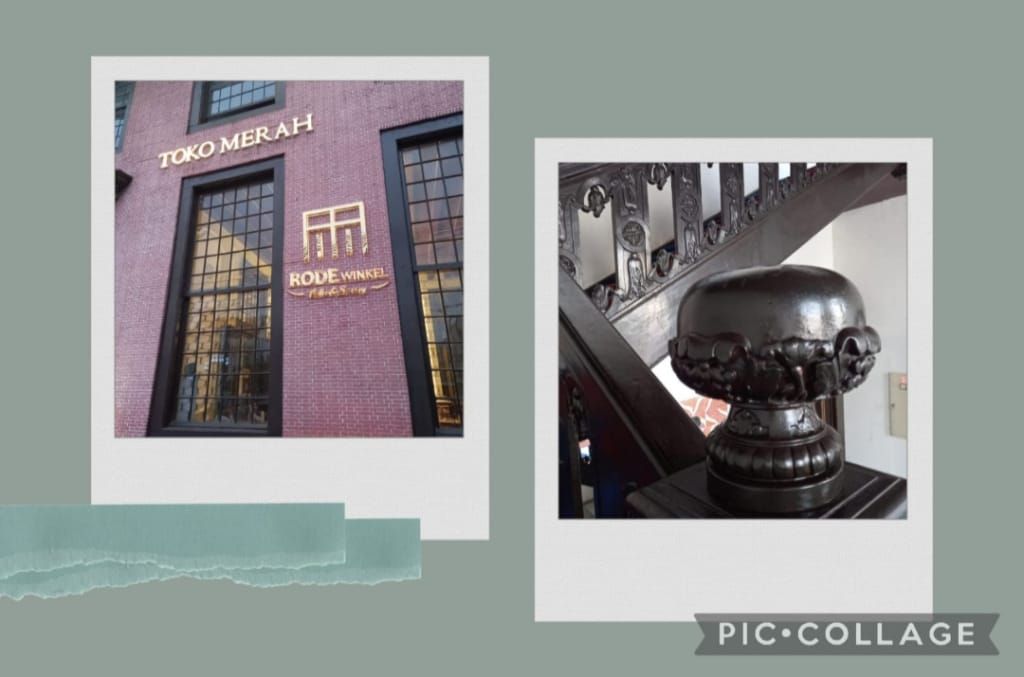 Jalan bareng dimulai dari kumpulnya “genk halan-halan” di halte bis Bundaran HI lanjut menaiki bis arah Setasiun Kota dan berhenti di halte bis seberang “Toko Merah” di jalan Kali Besar Barat dari sini wisata sejarah dimulai. Toko Merah merupakan bangunan yang dibangun pada abad ke 18 ciri khas berwarna merah bekas kediaman Gubernur Jenderal Gustaaf Willem Baron van Imhoff dengan arsitektur bergaya Baroque. Bangunan ini juga perpaduan gaya klasik Eropa dan Cina. Salah satu keunikan lainnya adalah tangga kayu hitam bergaya Baroque yang merupakan satu satunya di Jakarta. Sebelum Perang Dunia 2, bangunan ini menjadi kantor Bank Voor Indie saat ini Anda dapat menyeruput kopi di kedai lantai 2 sambil memandangi ramainya lalu lalang orang di pinggir kali, ah suatu suasana yang indah dan damai.