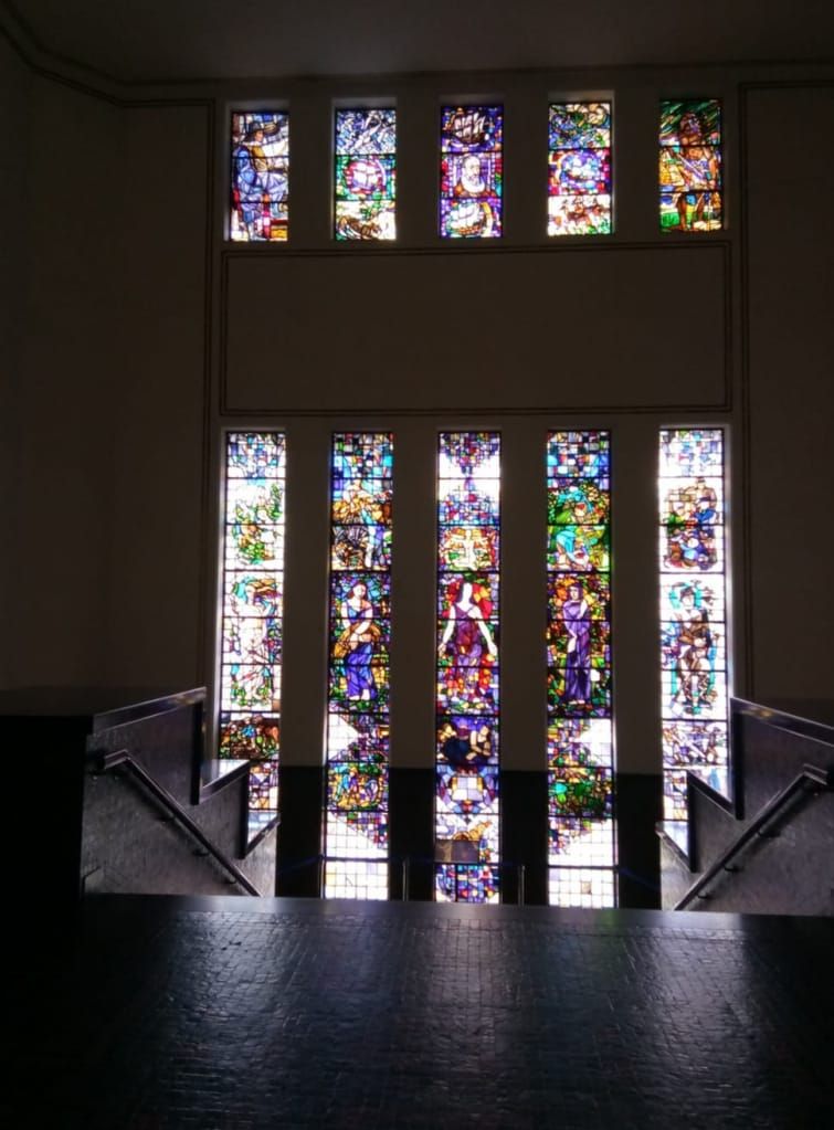 Kami berjalan melalui Museum Jakarta atau Museum Fatahillah, bangunan Neoklasik itu ternyata “kembaran” istana Dam di Amsterdam Belanda. Bangunan dahulunya digunakan sebagai Balai Kota Batavia dibangun tahun 1707-1712 kemudian diresmikan sebagai Museum Fatahillah pada 30 Maret 1974. Menyusuri trotoar sepanjang museum ke arah Selatan sampai dimuseum Mandiri. Kami memasuki Museum Mandiri langsung menuju lantai 2 menikmati keindahan lukisan lima bilah kaca patri yang menggambarkan empat musim di Belanda, selain itu juga menggambarkan Nakhoda Cornelis de Houtman sebagai orang Belanda pertama yang berkunjung ke Nusantara.
