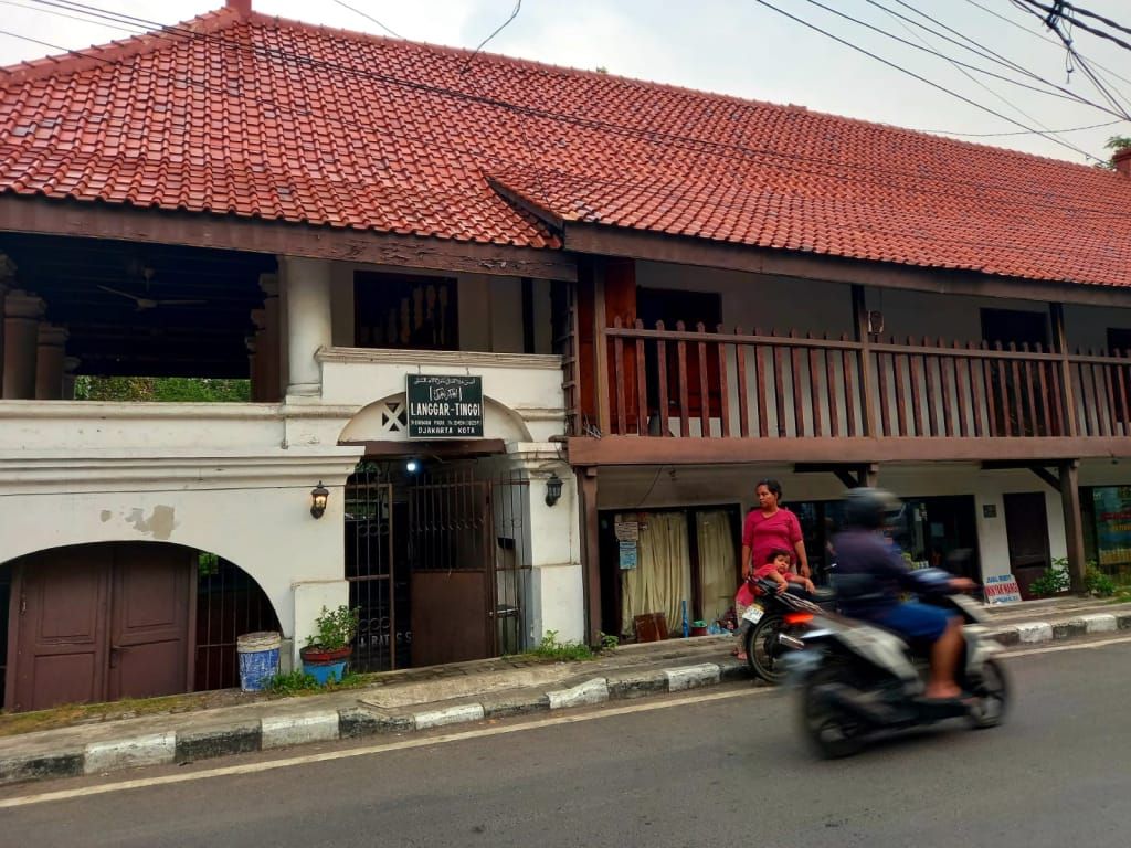 Masjid Langgar Tinggi (1829) menjadi destinasi terakhir. Langgar Tinggi tepat berada di tepi kali Angke dengan area tempat sholat berada di bagian atas, bagian bawah bangunan lawas itu ada toko minyak wangi. Berdiri di lantai atas masjid kami rasakan udara yang sejuk bikin hati tentram seraya membayangkan umat Islam masa lalu datang dengan kapal kecilnya merapat ke tepi masjid. Masjid dibangun oleh seorang saudagar asal Yaman dengan bentuk panggung, bagian atas dijadikan langgar, sementara bagian bawah digunakan sebagai tempat penginapan. Mimbar Khutbah kayu berusia ratusan tahun menjadi salah satu benda unik yang merupakan pemberian Sultan Pontianak dan masih digunakan hingga kini. Keberadaan keempat masjid telah menjadi saksi sejarah bagi gencarnya syiar Islam tempo dulu di Nusantara.