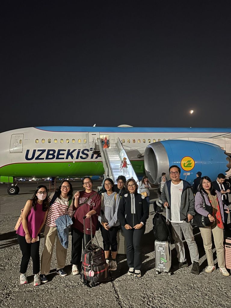 Pesawat Uzbekistan Airways HY 542 yang membawa kami dari Jakarta, tiba di bandara Islam Karimov, Tashkent sekitar pukul 18 petang, pada hari Rabu, 9 Oktober 2024. Pemegang paspor Indonesia bebas visa untuk memasuki Uzbekistan selama 30 hari. Setelah proses imigrasi yang relatif cepat, saya menukar uang USD yang saya bawa dengan Som Uzbekistan di counter bandara. Kurs saat itu 1 USD = 12.560 Som. Selanjutnya group kami yang terdiri dari 1 tour leader dan 11 peserta tour, menuju van yang telah menunggu kami di parkiran bandara.