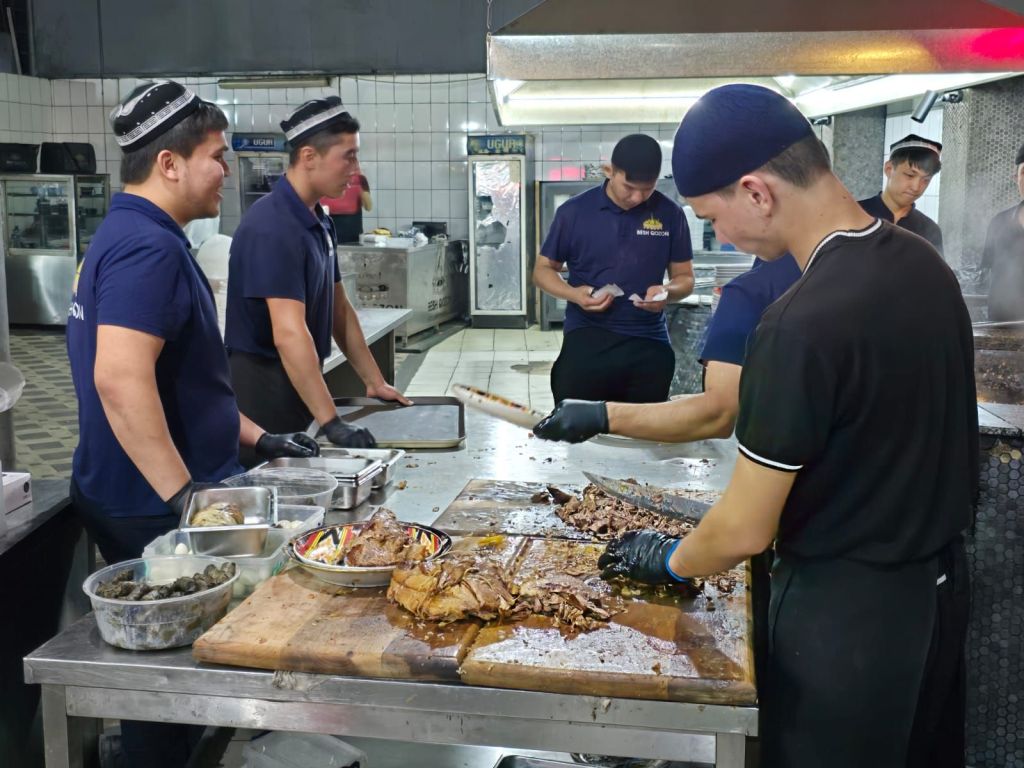 Sekitar pukul 20.00 malam kami tiba di restoran Besh Qozon, restoran yang menyajikan hidangan khas Uzbekistan yaitu Plov, nasi yang dimasak dengan minyak samin dan daging kambing, serta sashlik, semacam sate kambing berukuran jumbo dengan irisan paprika , unik namun enak rasanya. Setelah selesai makan malam, kami menuju Art Hotel di pusat kota Tashkent untuk bermalam. Hotel ini terletak di depan kompleks restoran Seoul Mun, salah satu tempat hang out paling ramai di Tashkent.