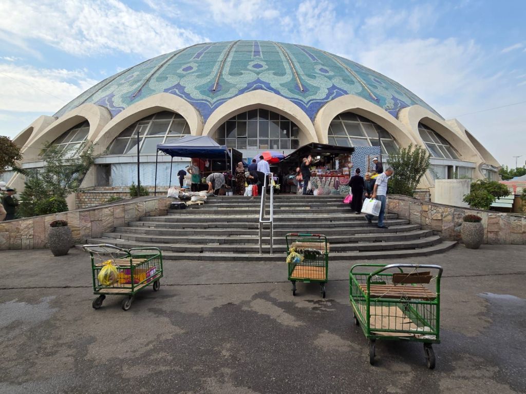 Selanjutnya kami menuju Chorsu Bazaar, pasar tradisional terbesar dan tertua di Tashkent. Pasar ini merupakan salah satu pasar utama pada jalur sutra, jalur perdagangan antara China dan Persia selama lebih dari 2000 tahun. Terletak di pusat kota tua Tashkent, pasar ini dikenal dengan kubah biru besar yang menjadi ciri khasnya. Pasar ini menawarkan berbagai macam barang, mulai dari bahan makanan segar seperti buah-buahan, sayuran, daging, dan rempah-rempah, hingga pakaian, kerajinan tangan, dan barang-barang rumah tangga.