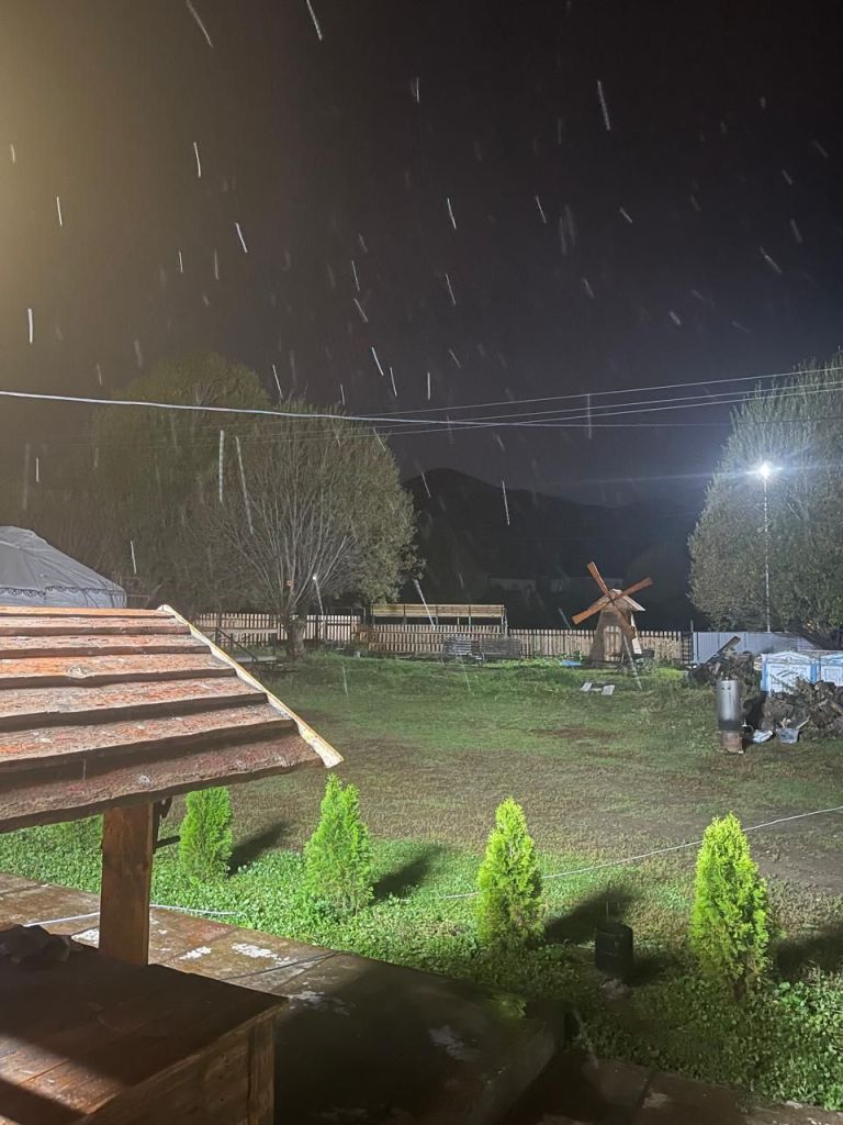 Selesai makan malam, kami masih asik ngobrol-ngobrol. Sekitar jam 10 malam, dari jendela guest house terlihat titik-titik putih melayang di udara. Ternyata salju mulai turun malam ini. Kami bergegas keluar guesthouse dengan pakaian seadanya. Udara dingin diluar guesthouse tak menghalangi kami untuk menikmati turunnya salju pertama kali di Saty village. Warga sekitar juga banyak yang keluar rumah, menyambut turunnya salju yang datang lebih awal di musim gugur ini.